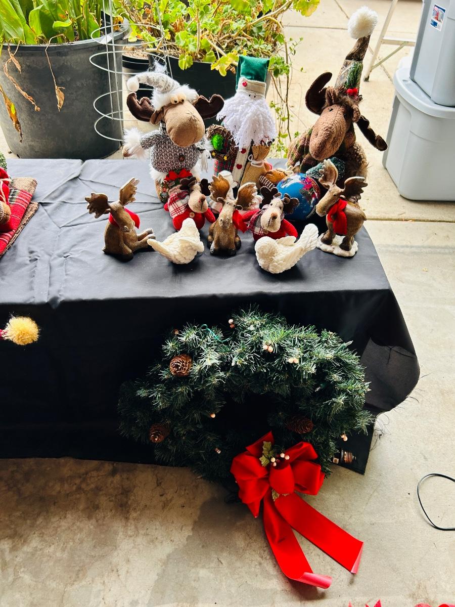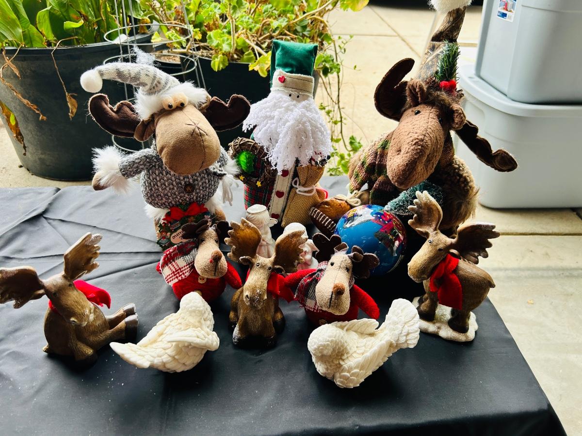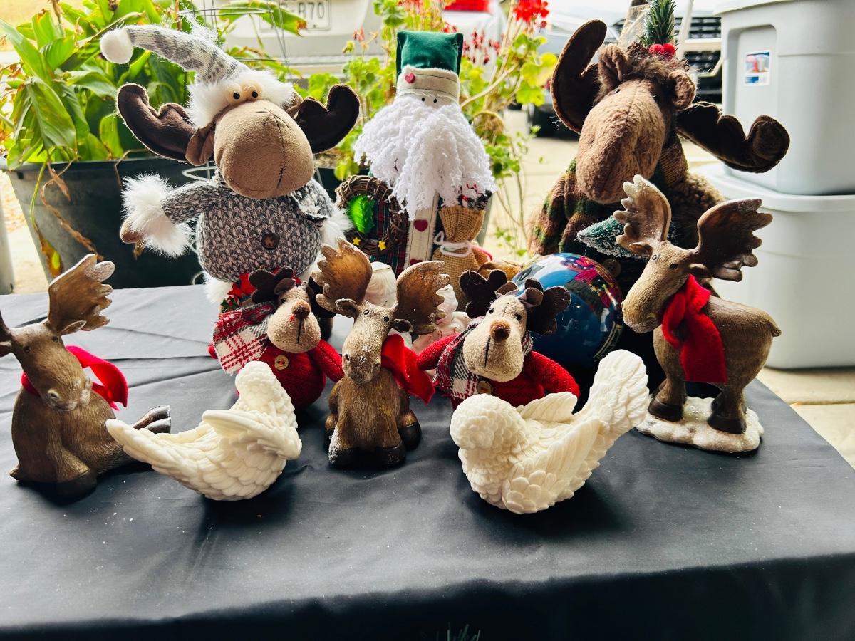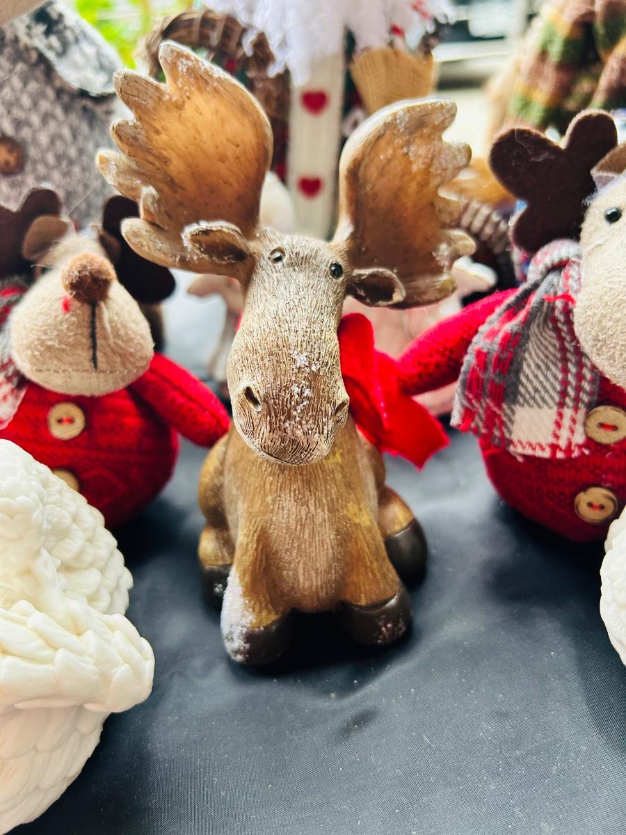 CUTE HAPPY CHRISTMAS MOOSE AND ALABASTER DOVES