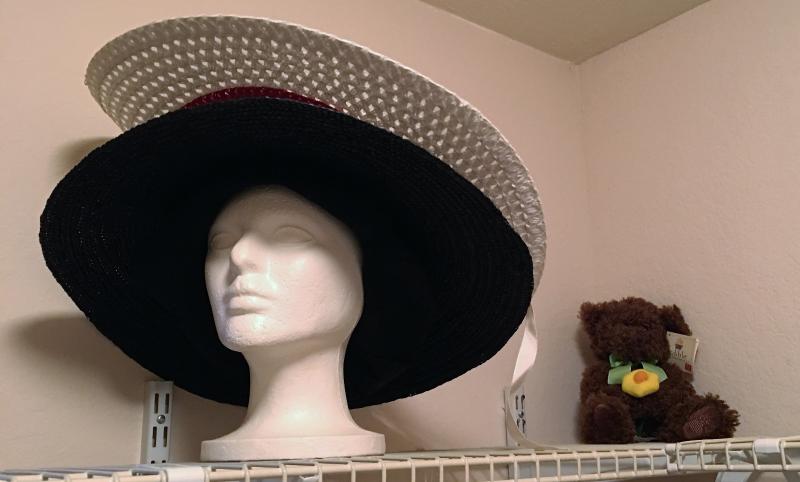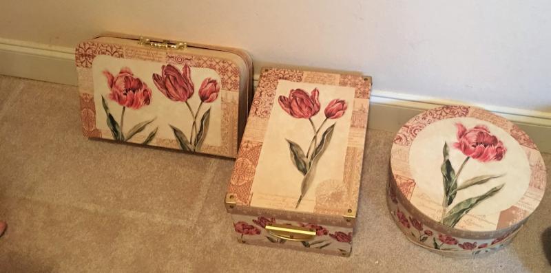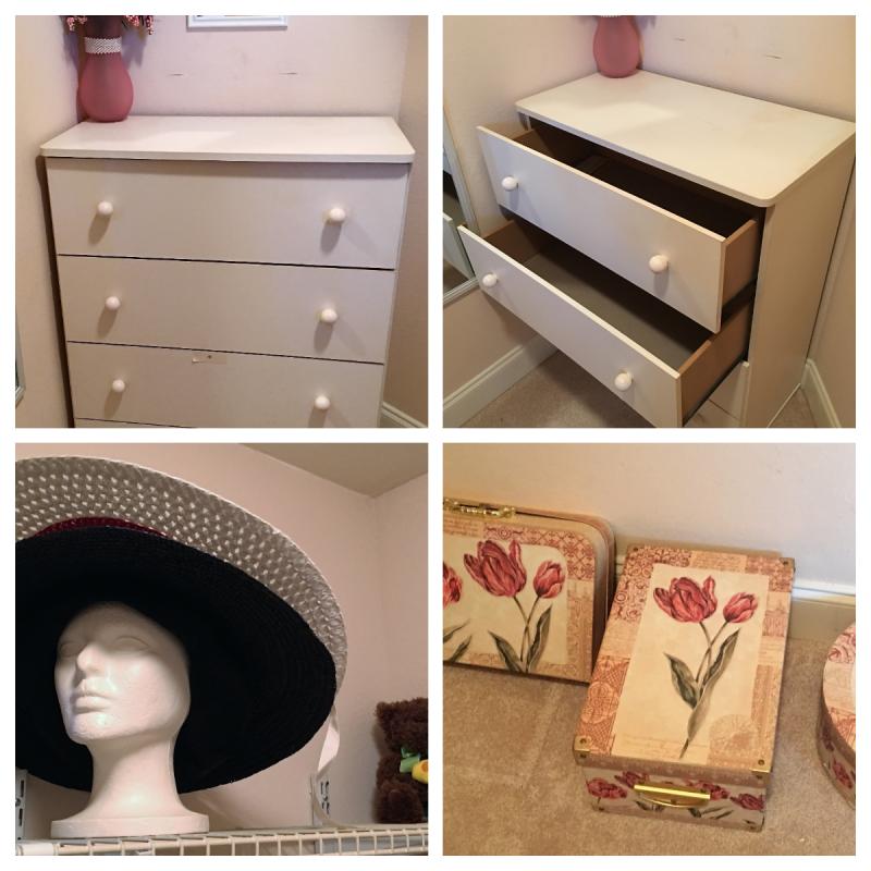 This lot contains hats, hat boxes, artwork, a chest of drawers and more