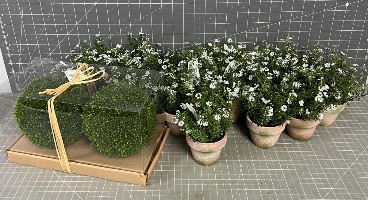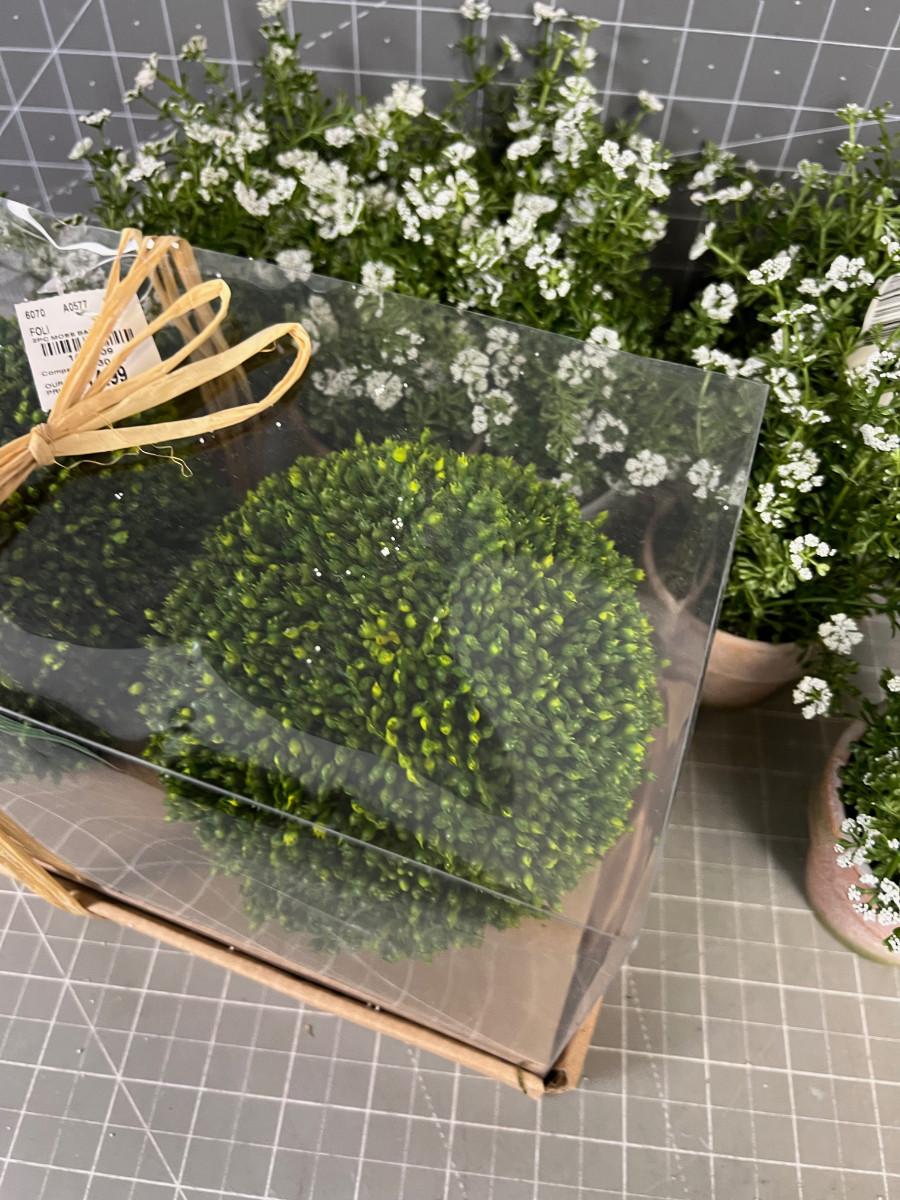 Cute Little Faux Flower in a small pot + Green Décor Ball