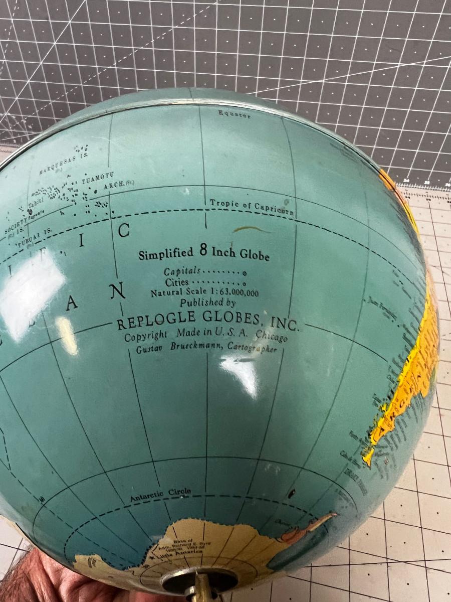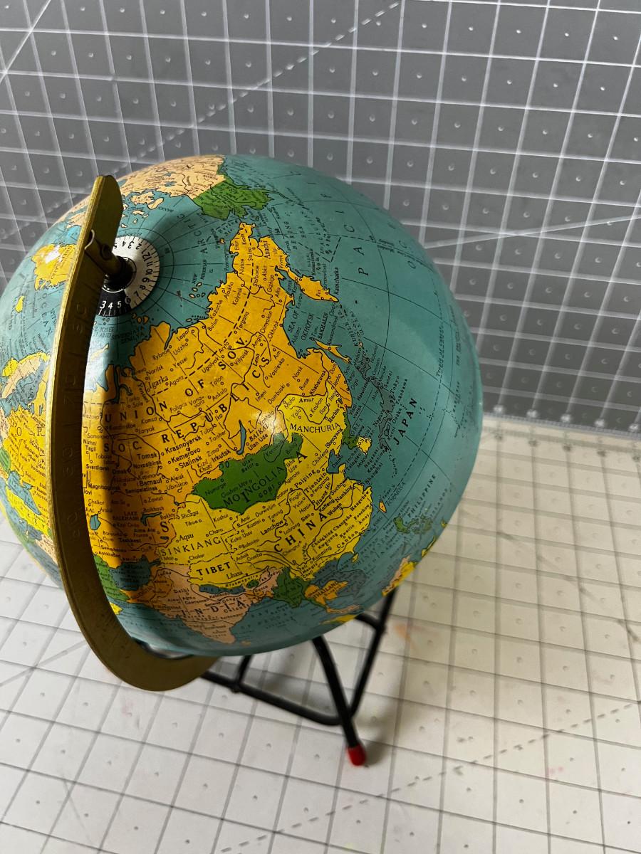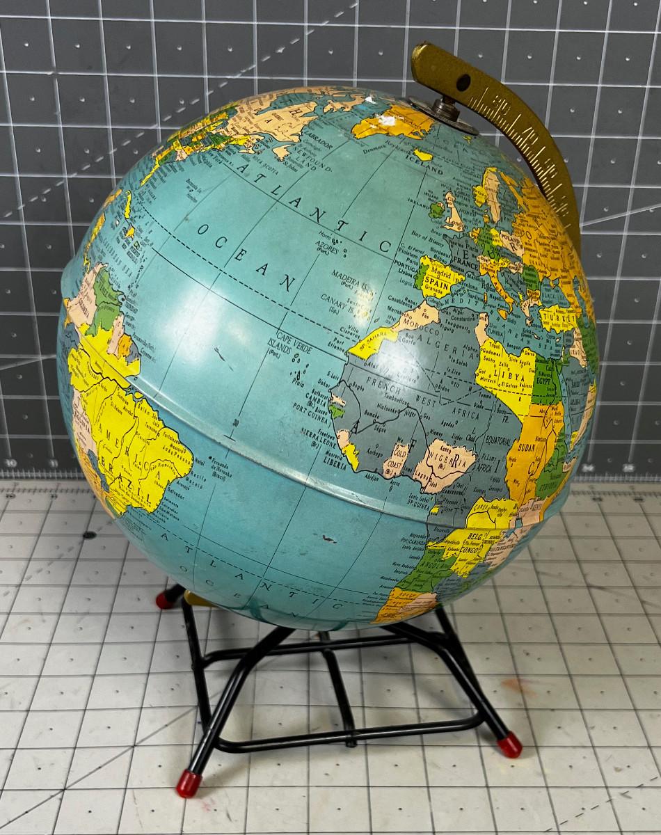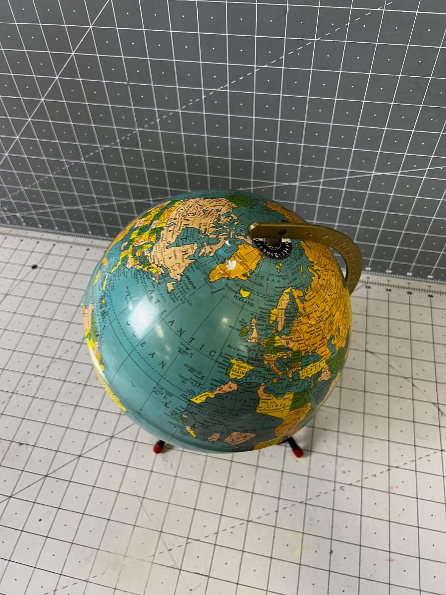 Cute Little Metal Globe Vintage 1950's Referred to as: Simplified 8" Globe