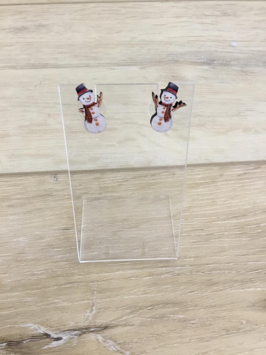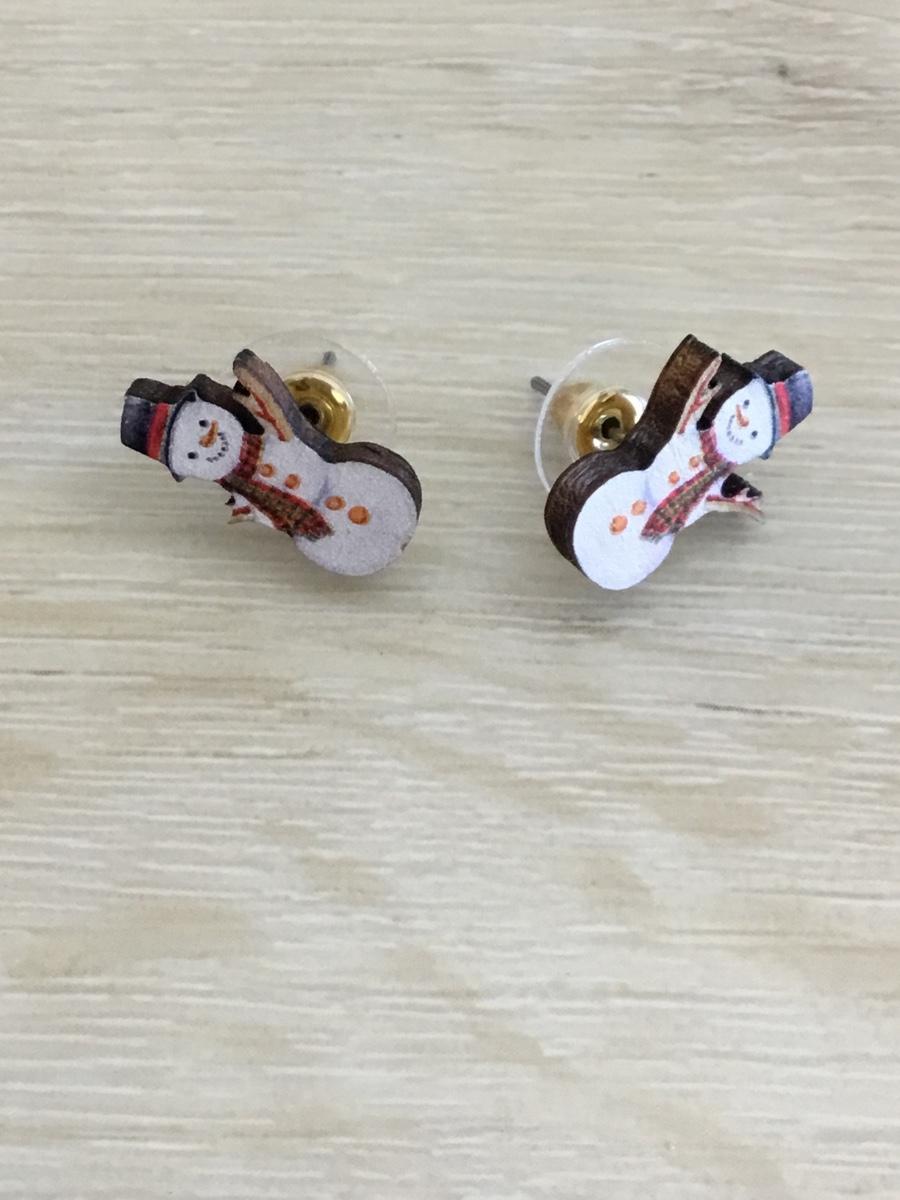 Cute Little snowman, wood stud earrings