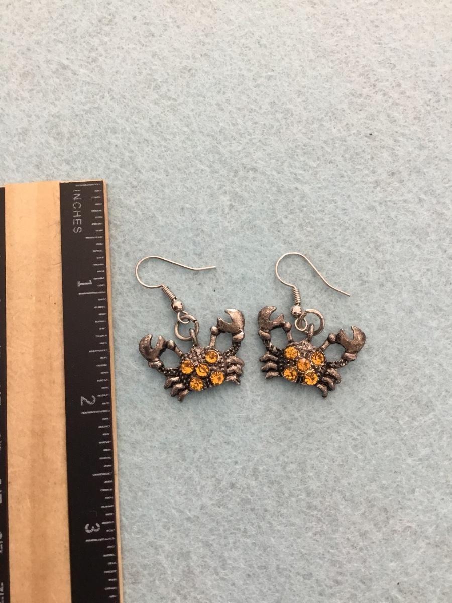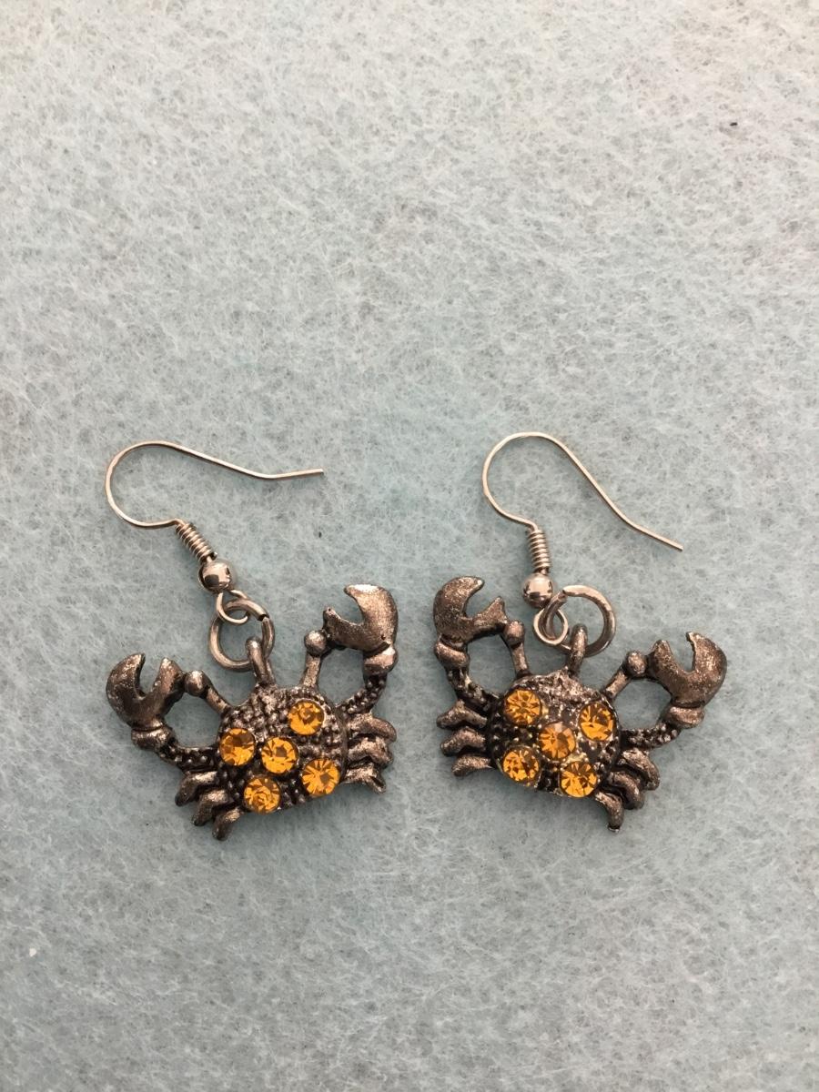 Cute little vintage Orange rhinestone Crabs dangle earrings