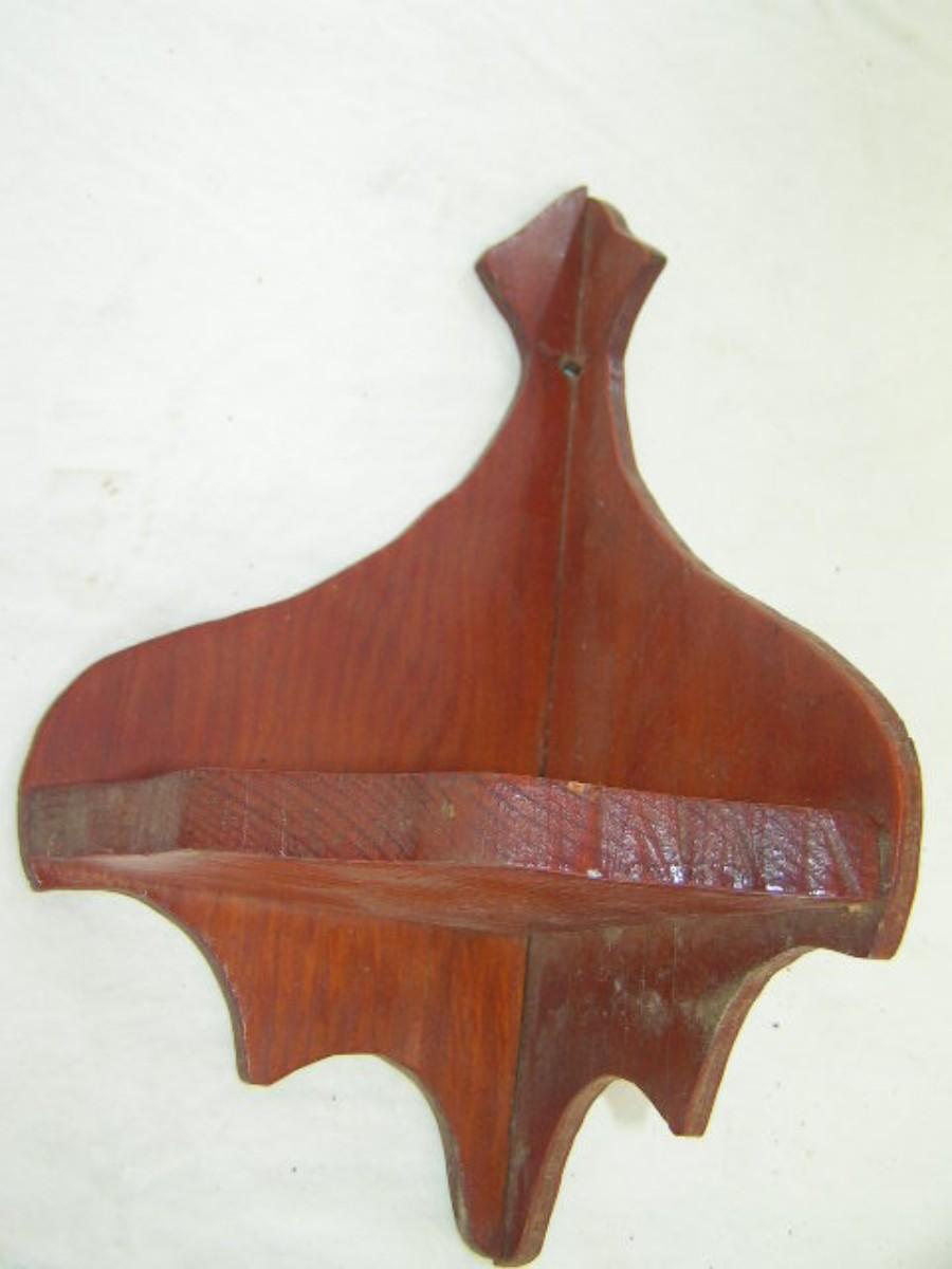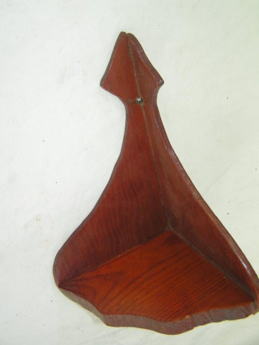 Cute little wooden corner display shelf for knickknacks.
