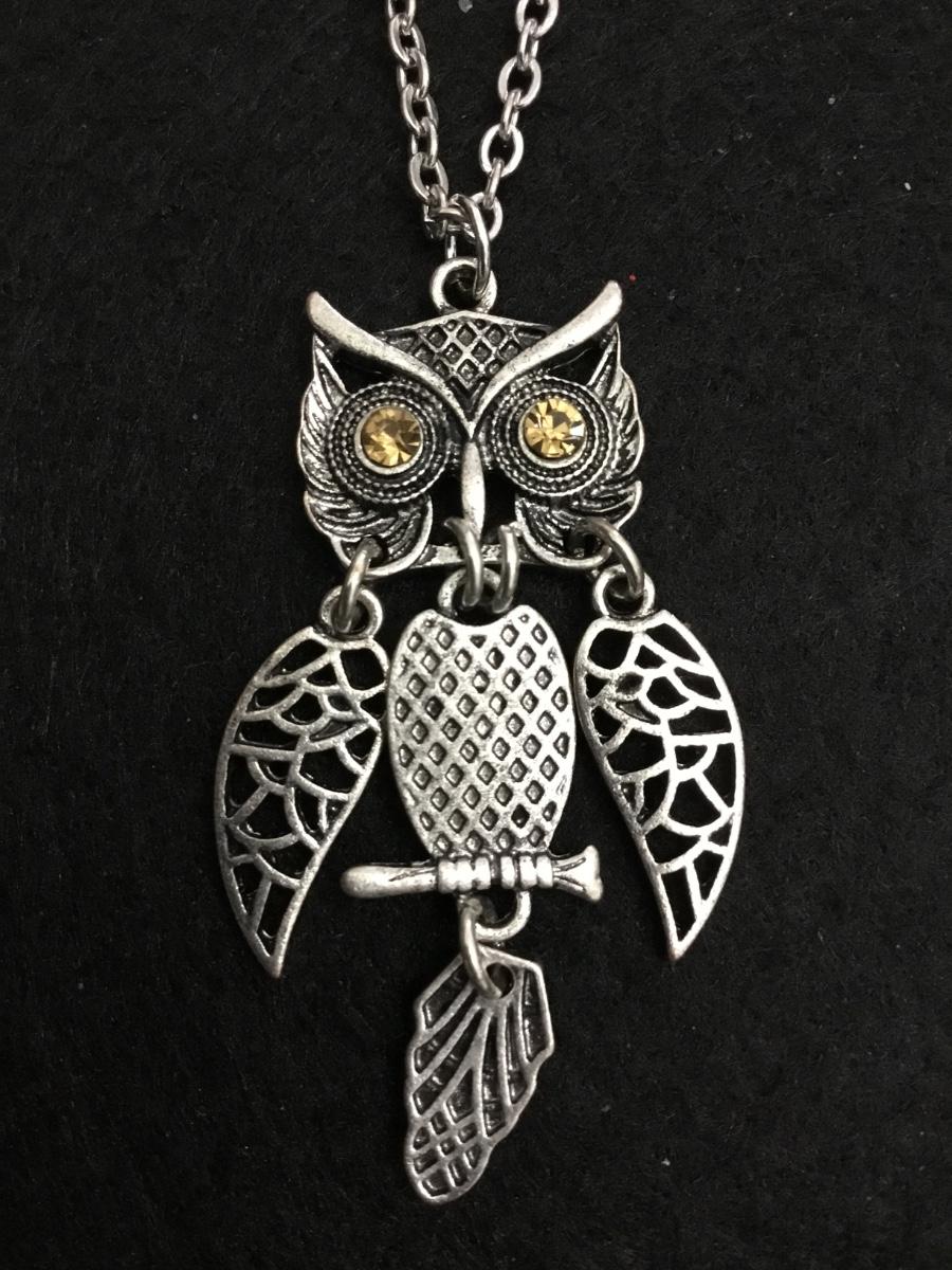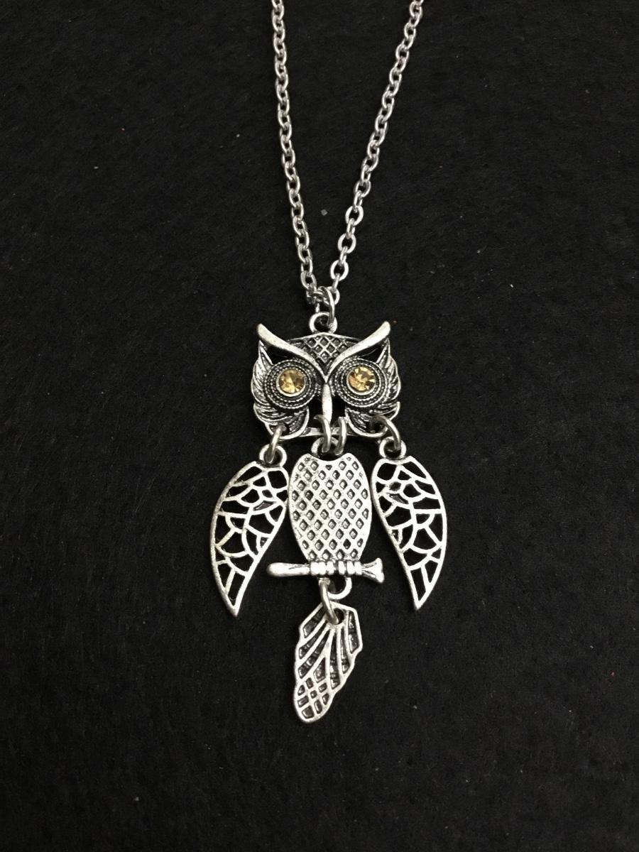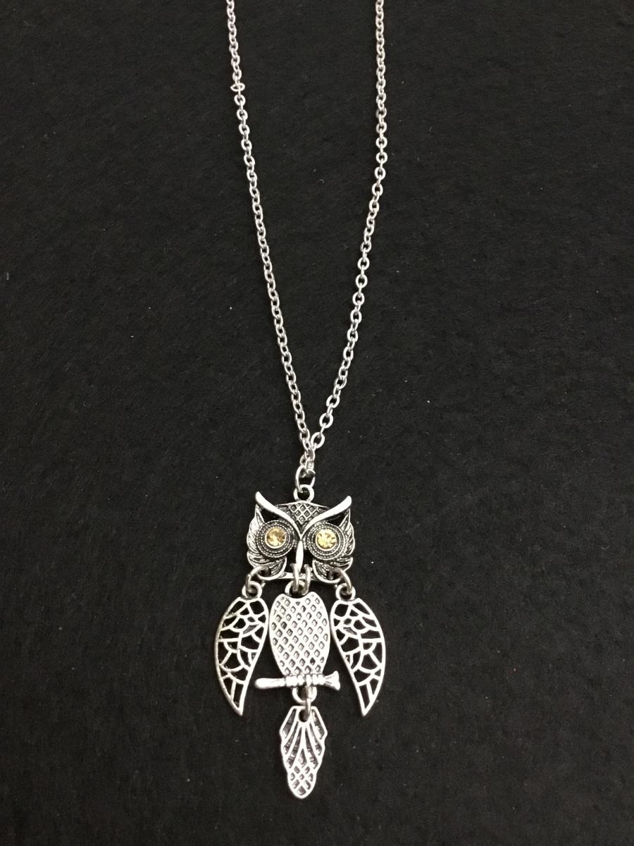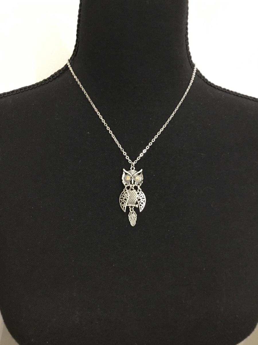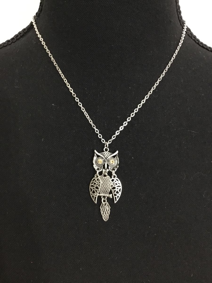Cute mid century silver tone owl necklace