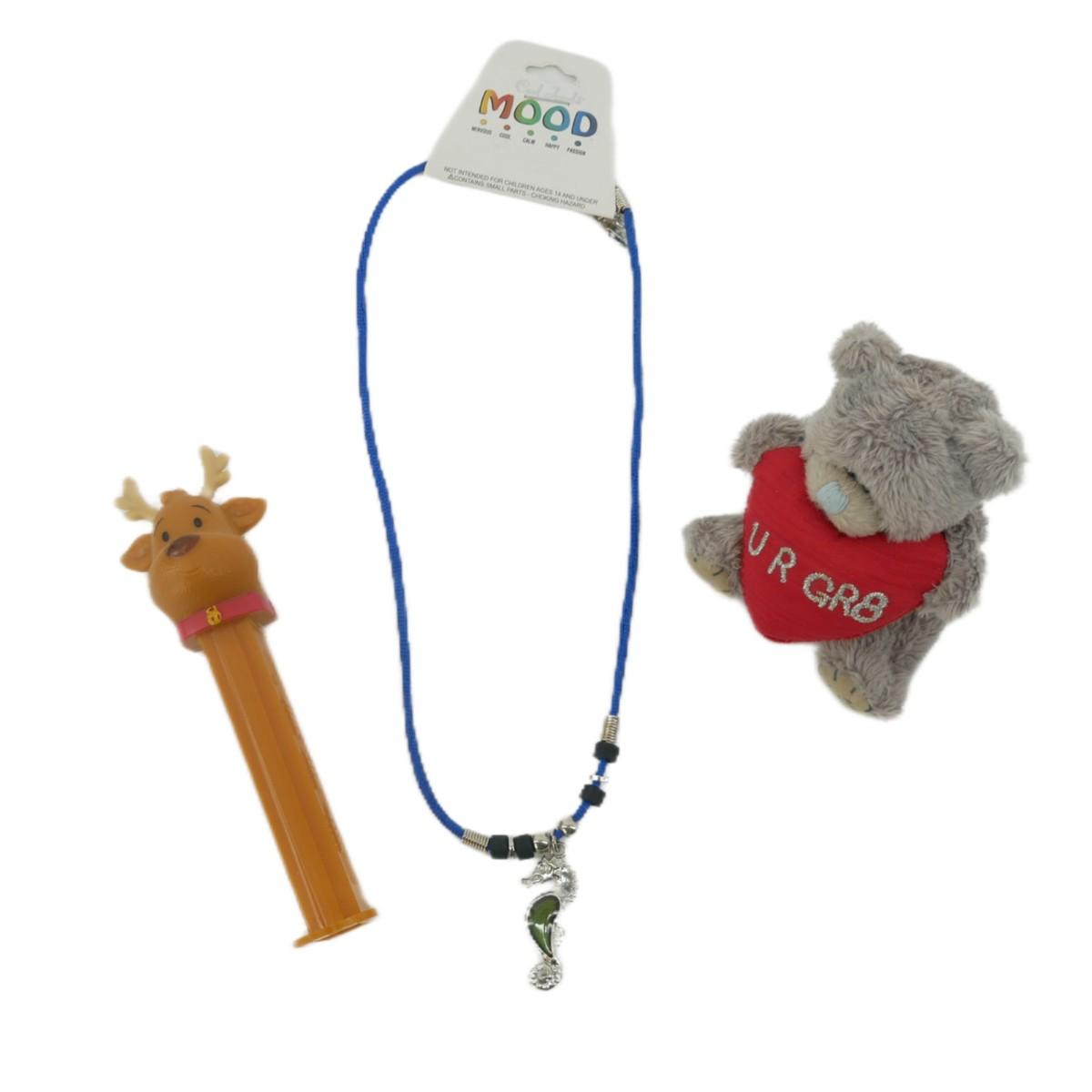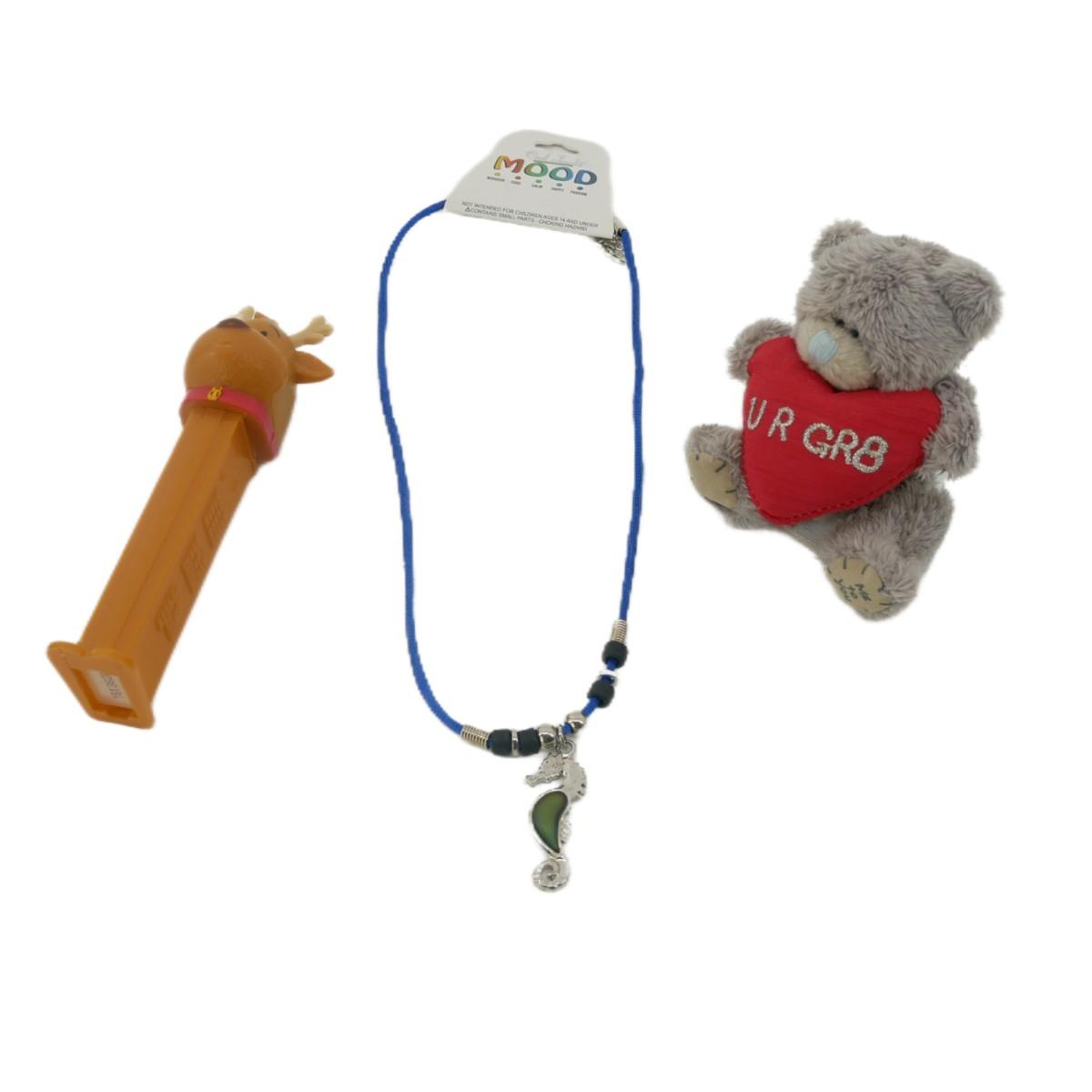 Cute lot with pez dispenser, seahorse mood necklace, and tiny plush bear