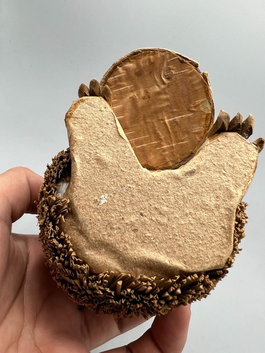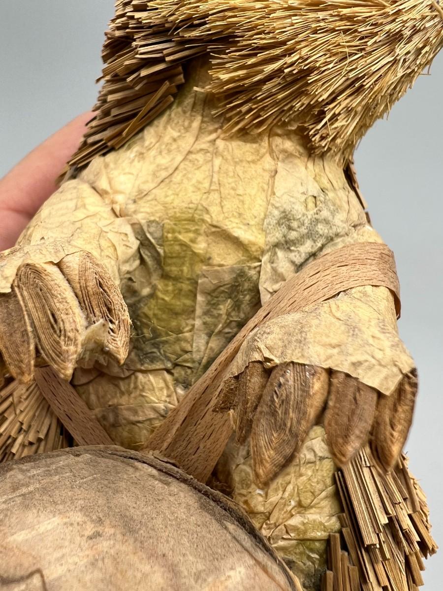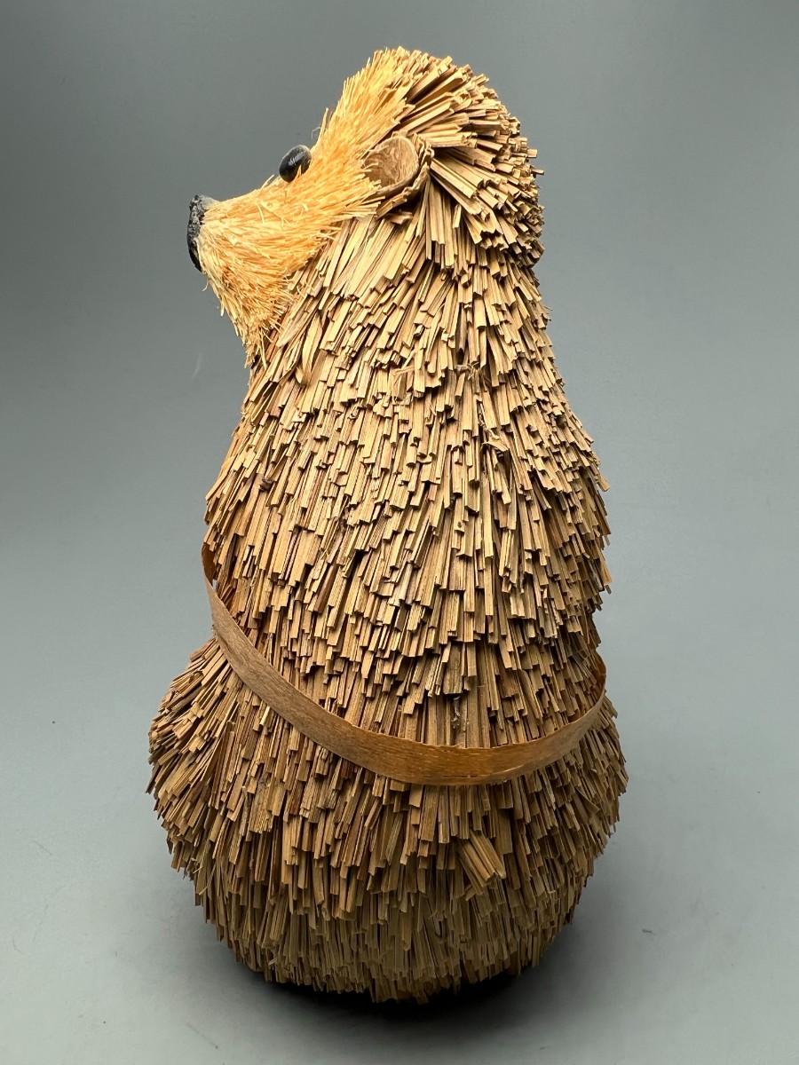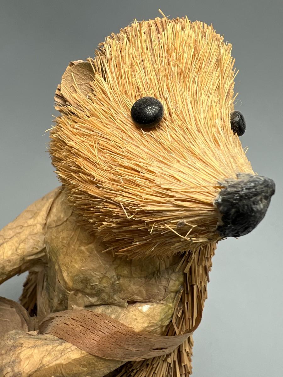 Cute Natural Fiber Hedgehog Playing Drum Figurine. In good condition. Small under 6" size.