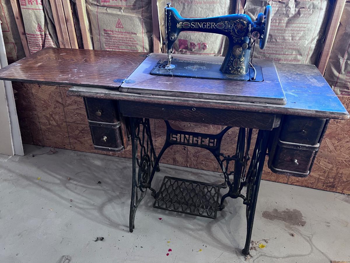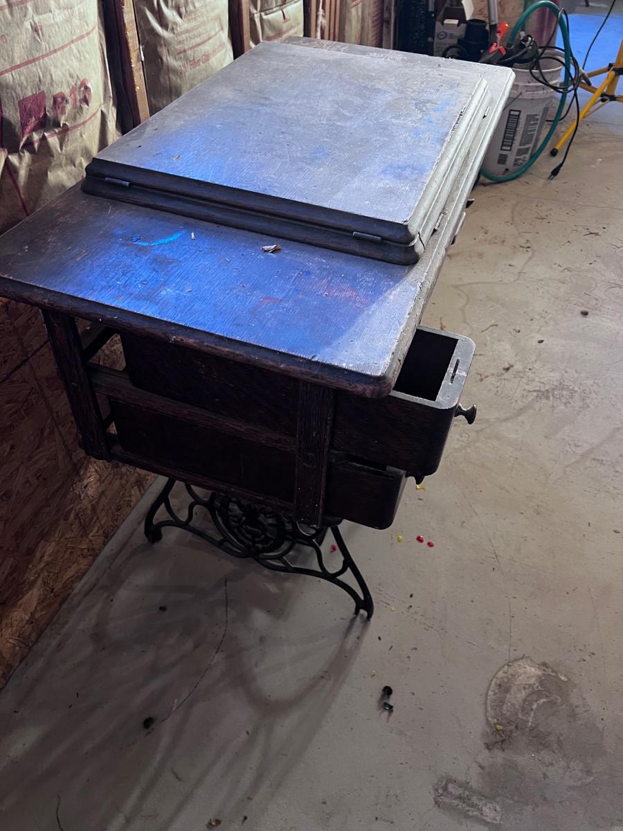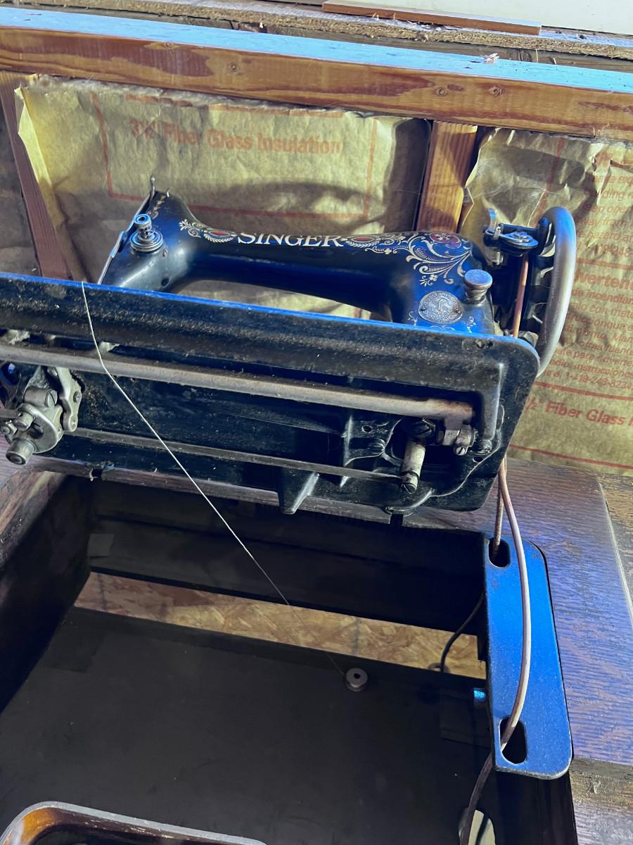 USED and it might need a belt and you could be sewing in no time! Missing a wheel. This is downstairs and you will need to carry it up from the basement this time. Thank you!