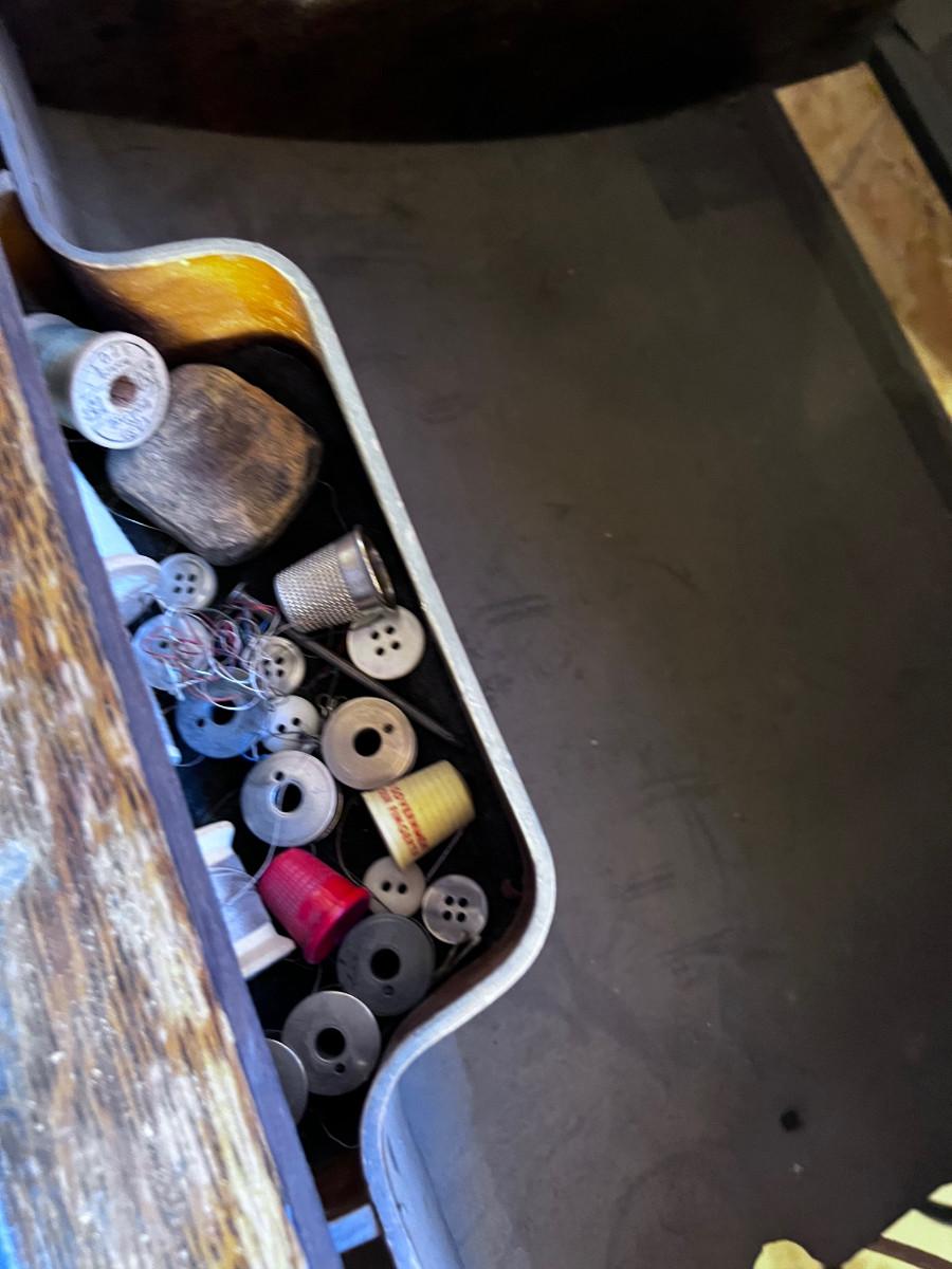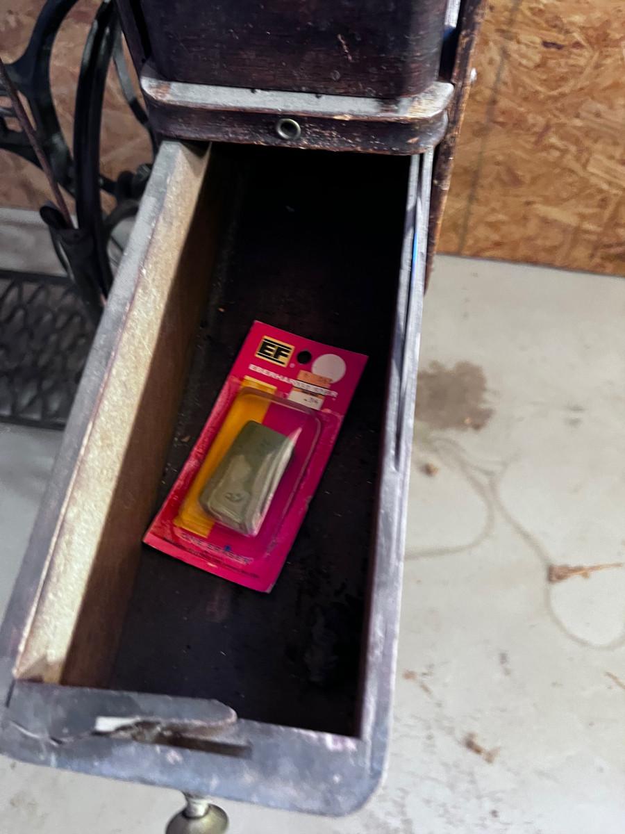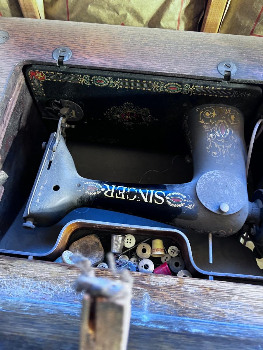 USED and it might need a belt and you could be sewing in no time! Missing a wheel. This is downstairs and you will need to carry it up from the basement this time. Thank you!