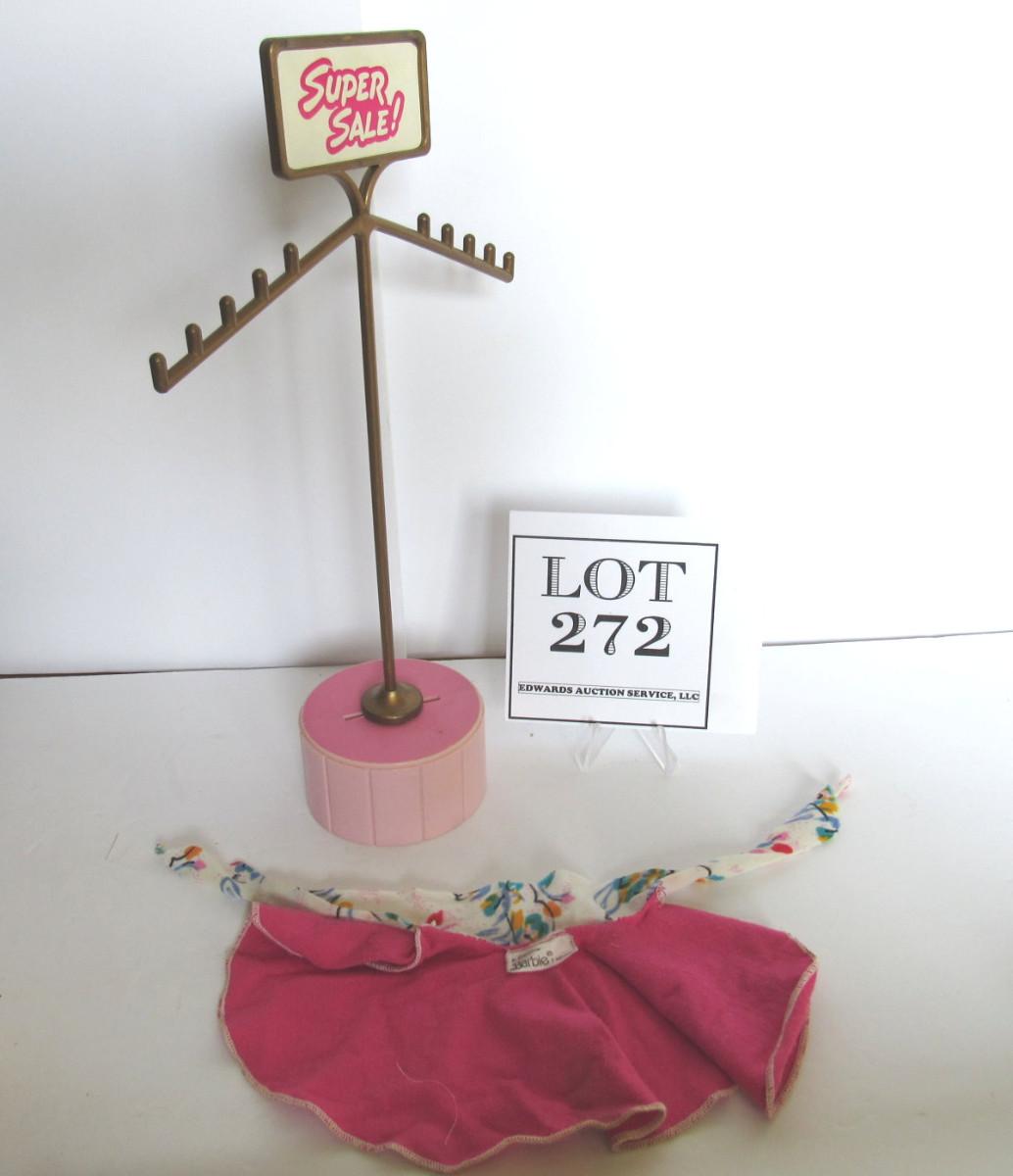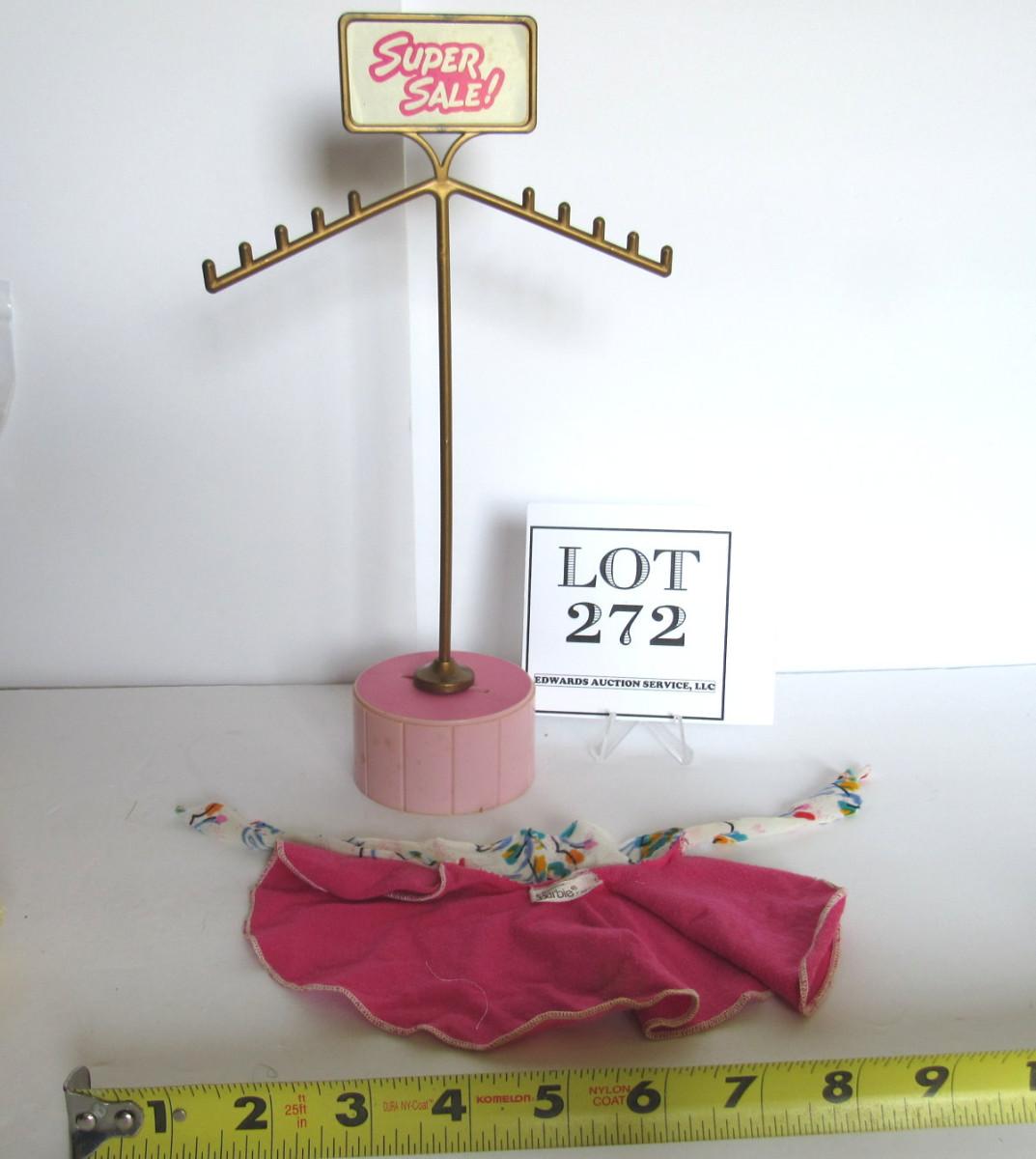 Cute Older Barbie Doll Sized Clothes Stand and Older Barbie Cape With Label