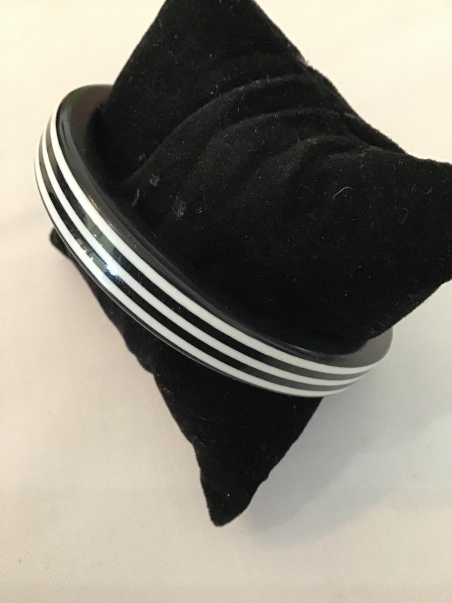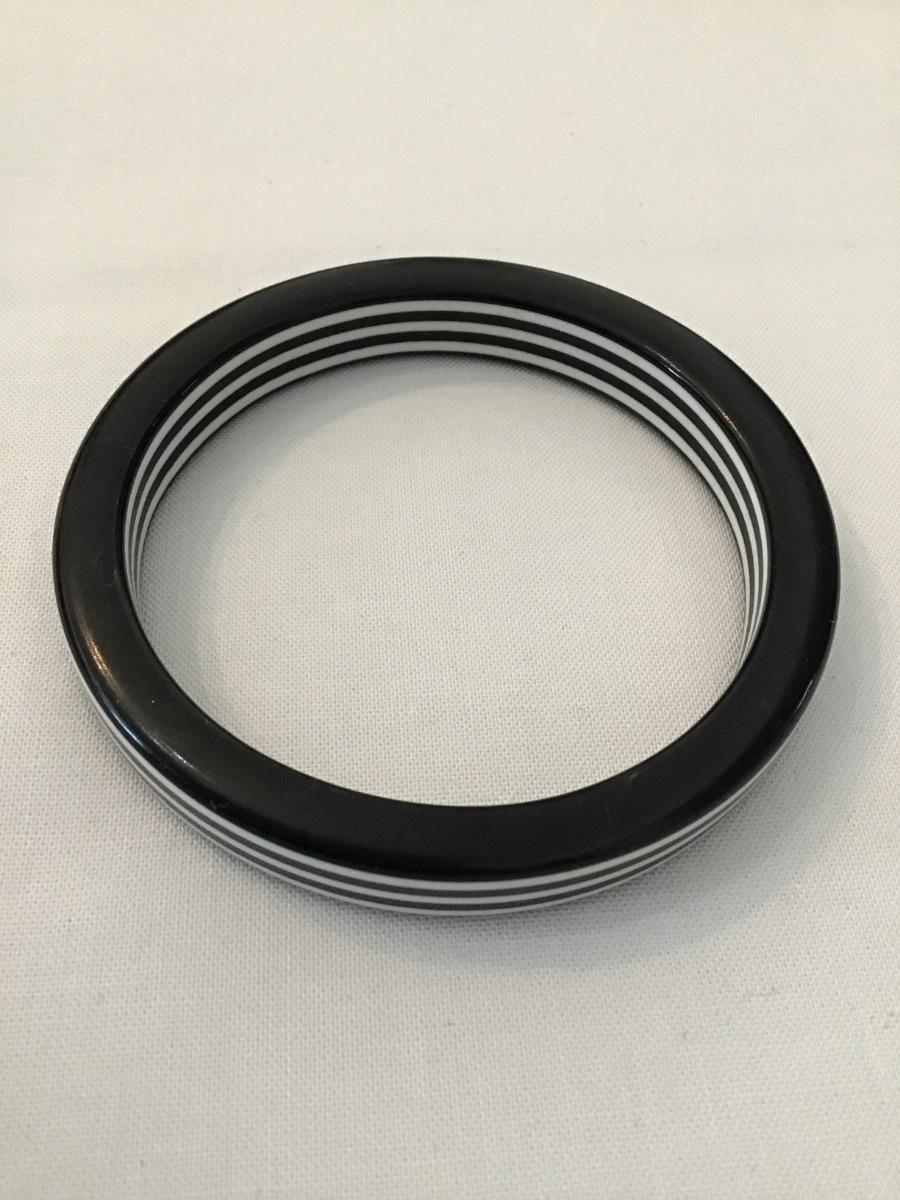 Cute retro vintage, black and white pinstripe Lucite bangle bracelet