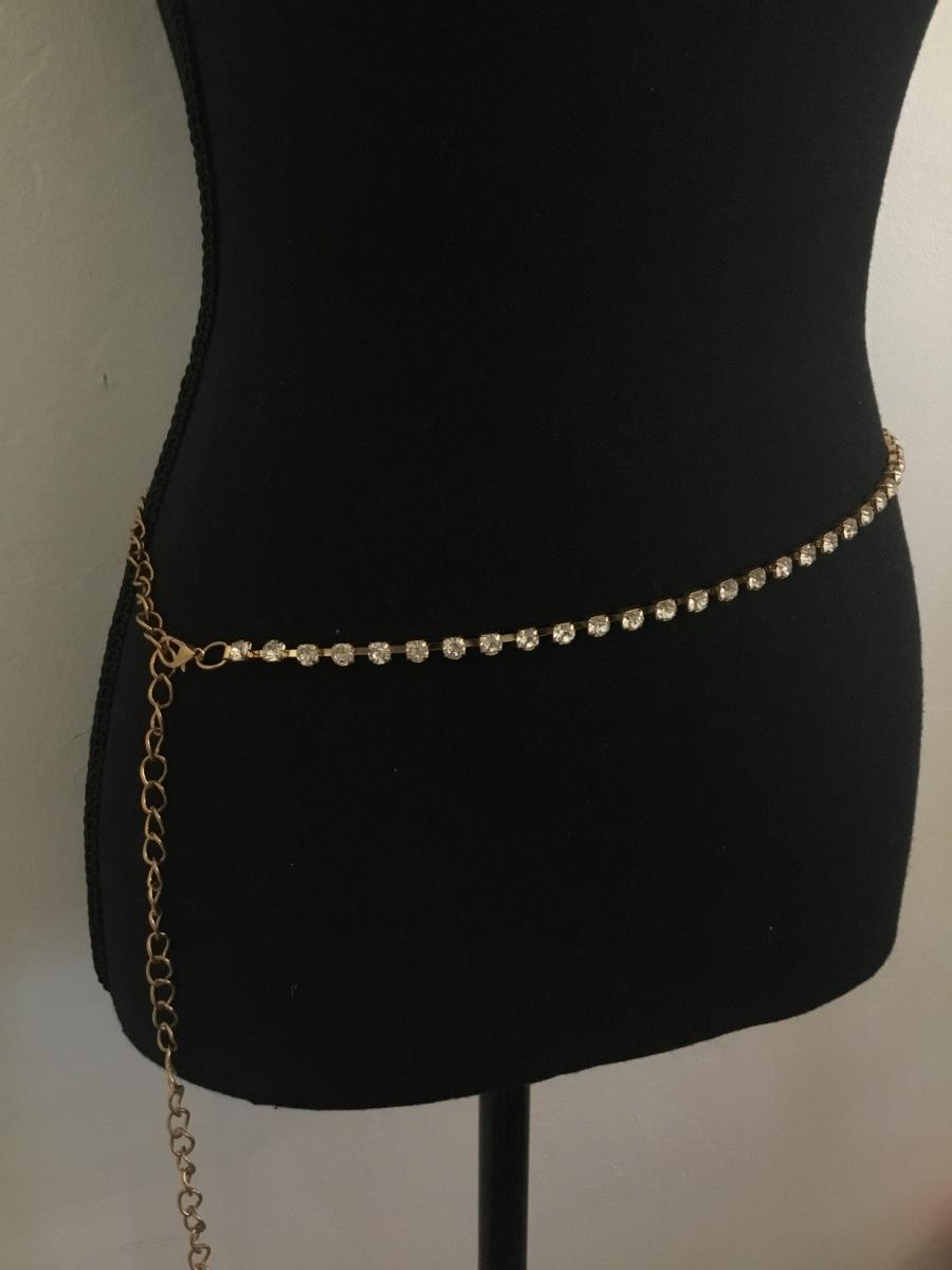 Cute rhinestone, gold tone, chain waist belt, vintage