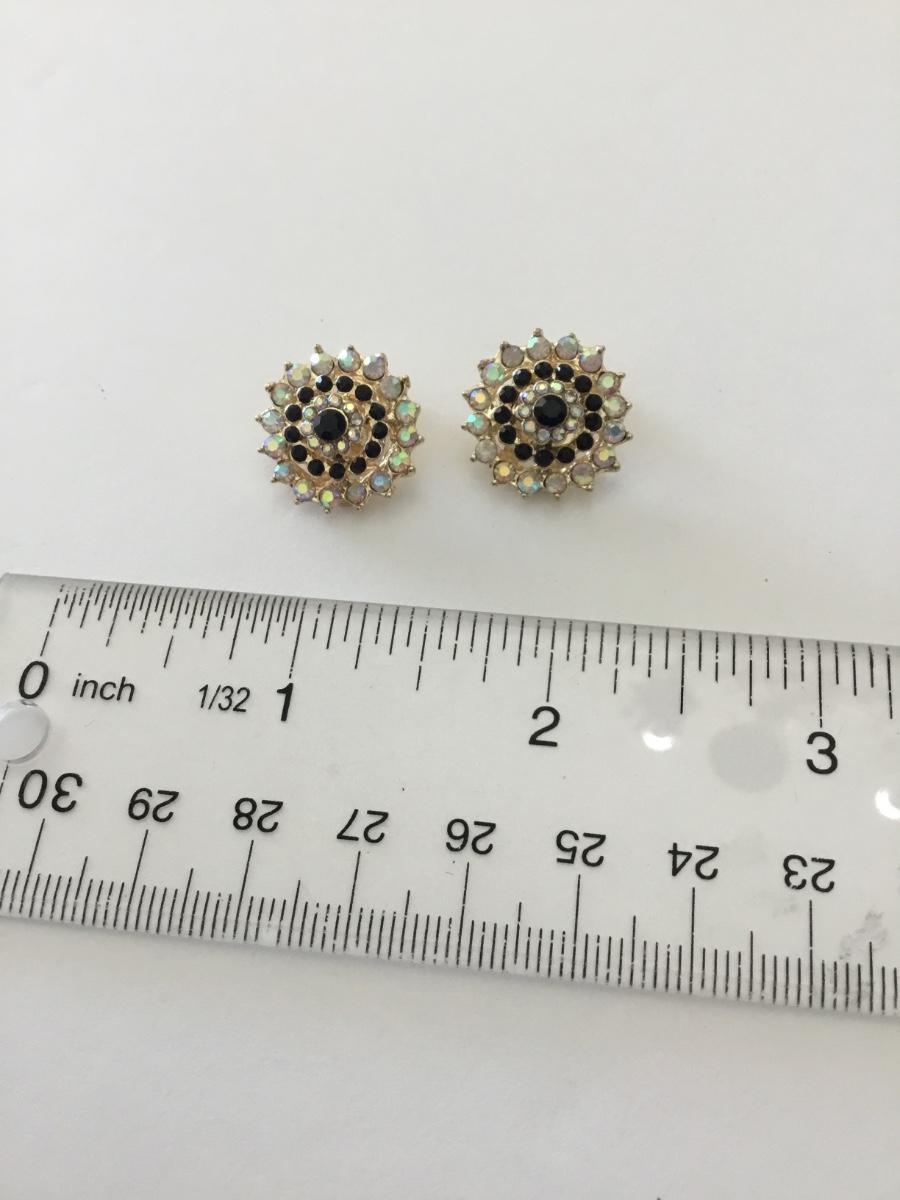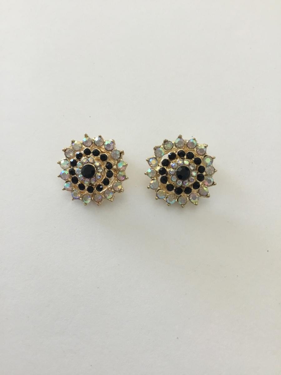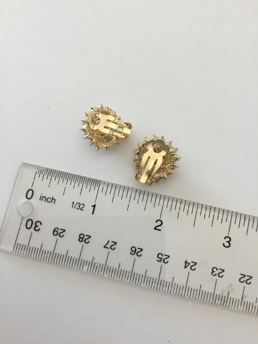 Cute rhinestone gold tone clip on flower earrings