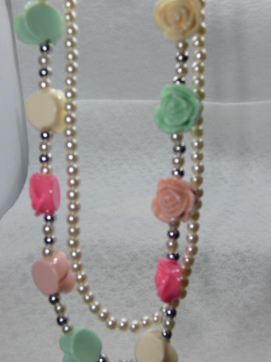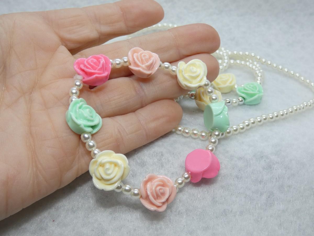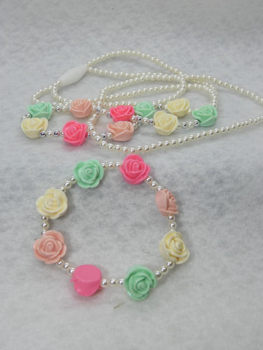 Cute Rose & Pearl Childs Necklace And Bracelet Set