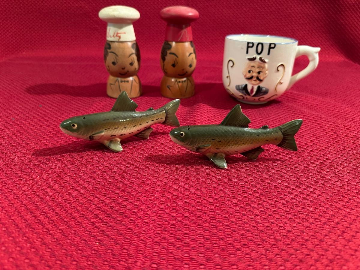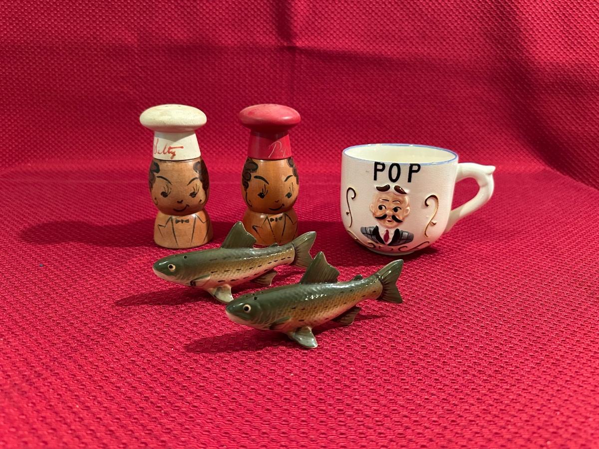 CUTE SALT AND PEPPER SHAKERS AND POP'S MUG