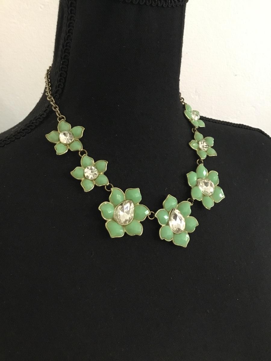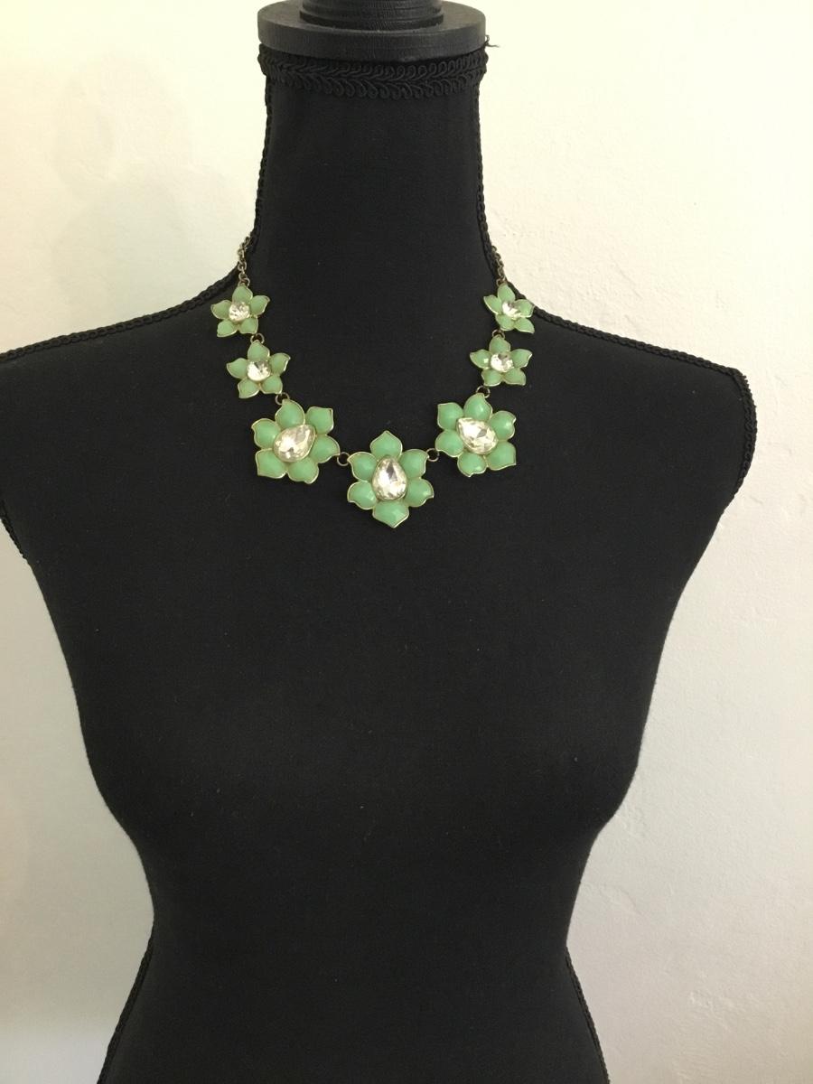 Cute Seafoam, green rhinestone flower, statement, necklace