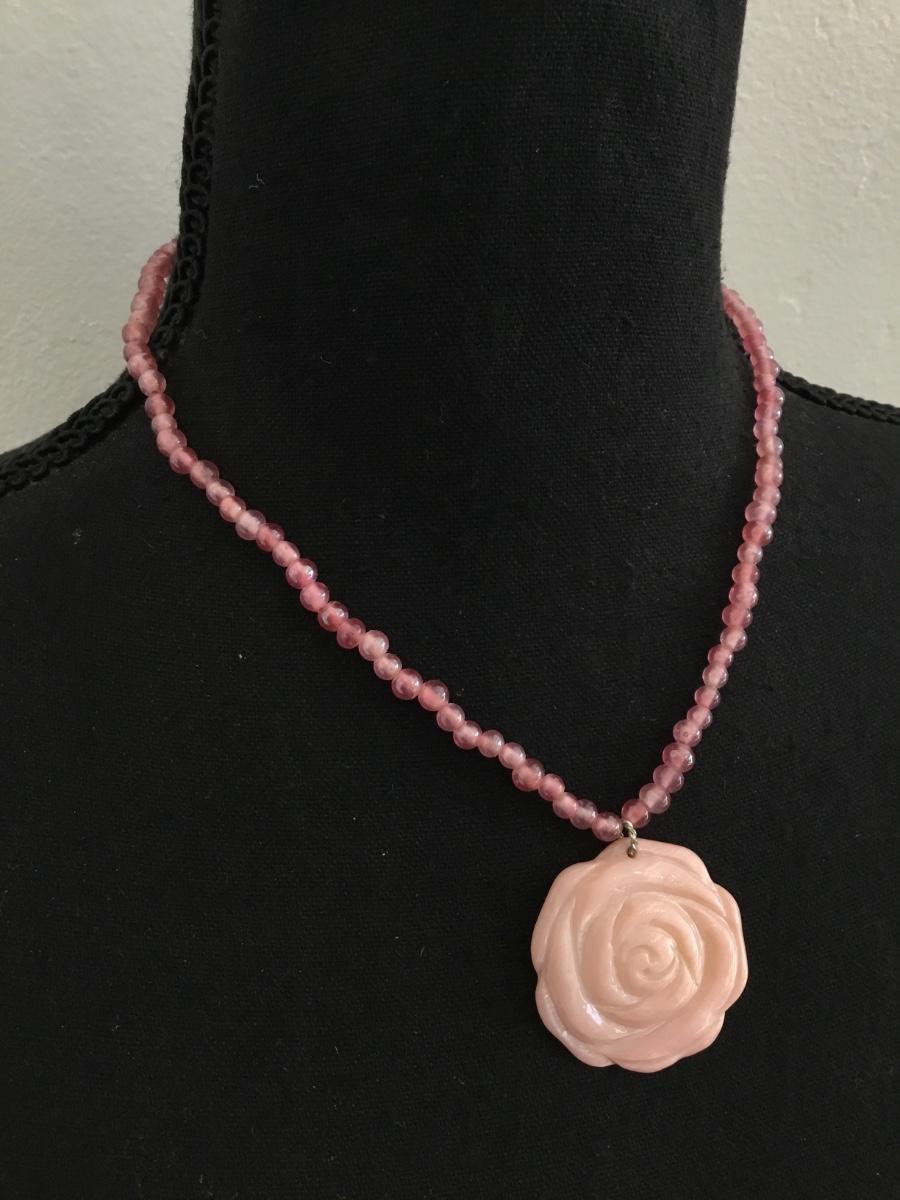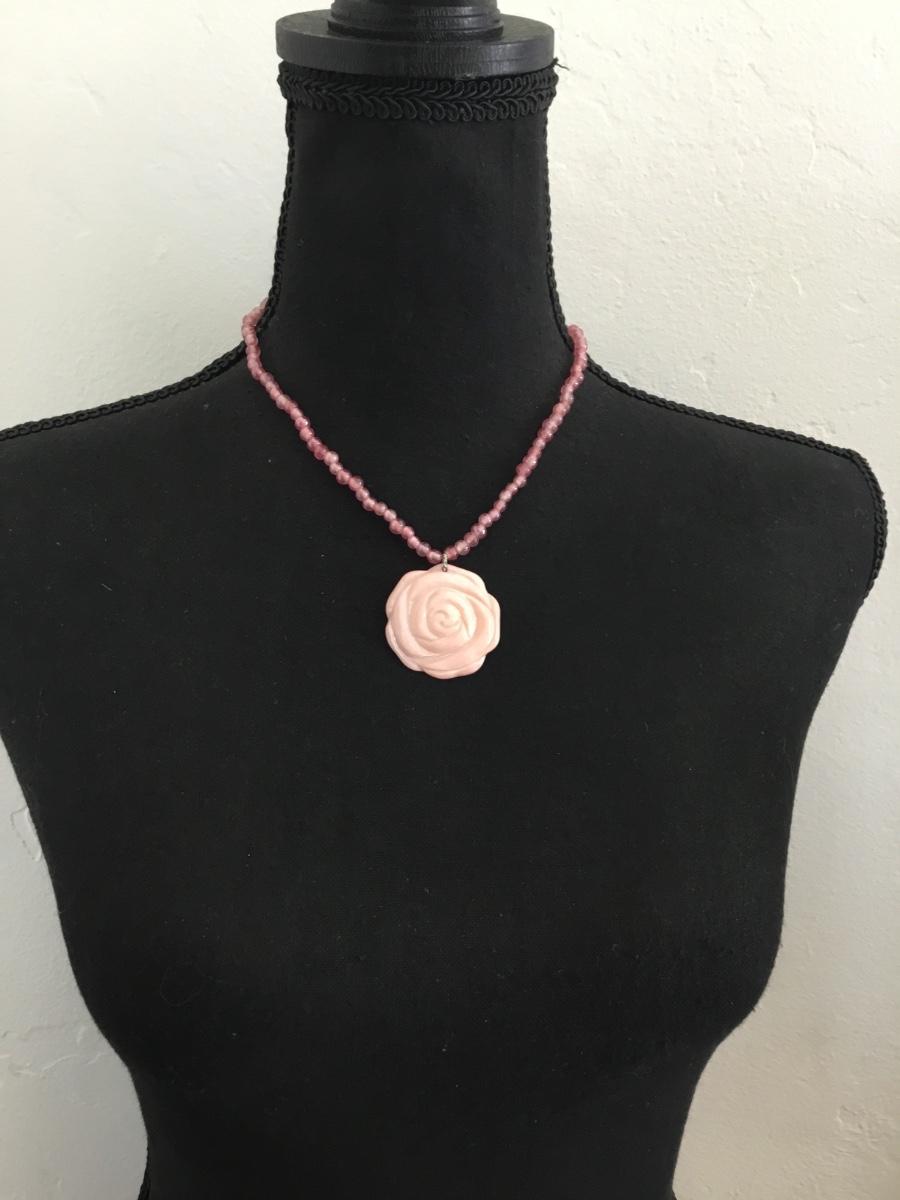 Cute shell carved flower pendant necklace