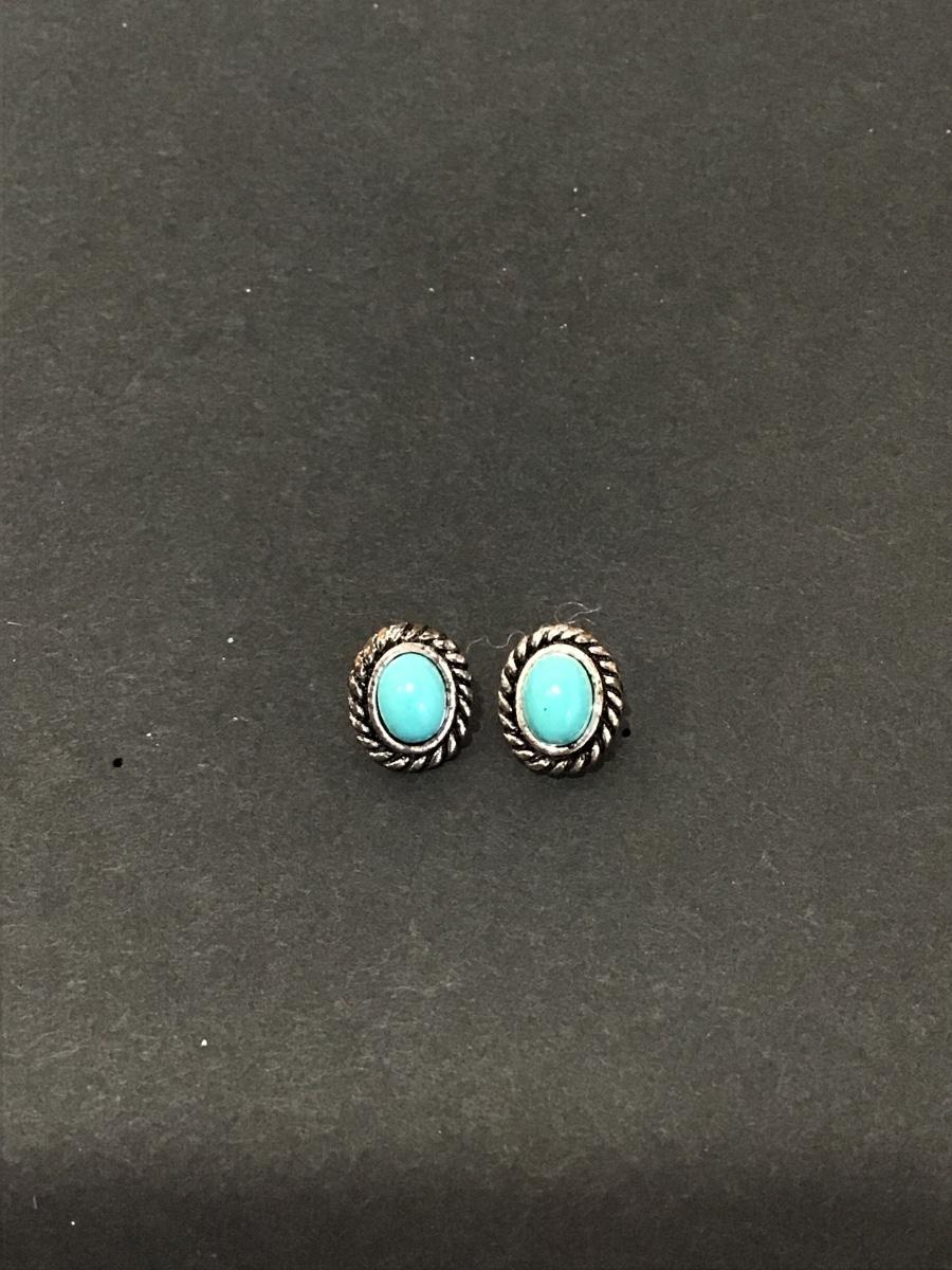 Cute Silver tone faux turquoise 925 sterling post stud earrings and backs
