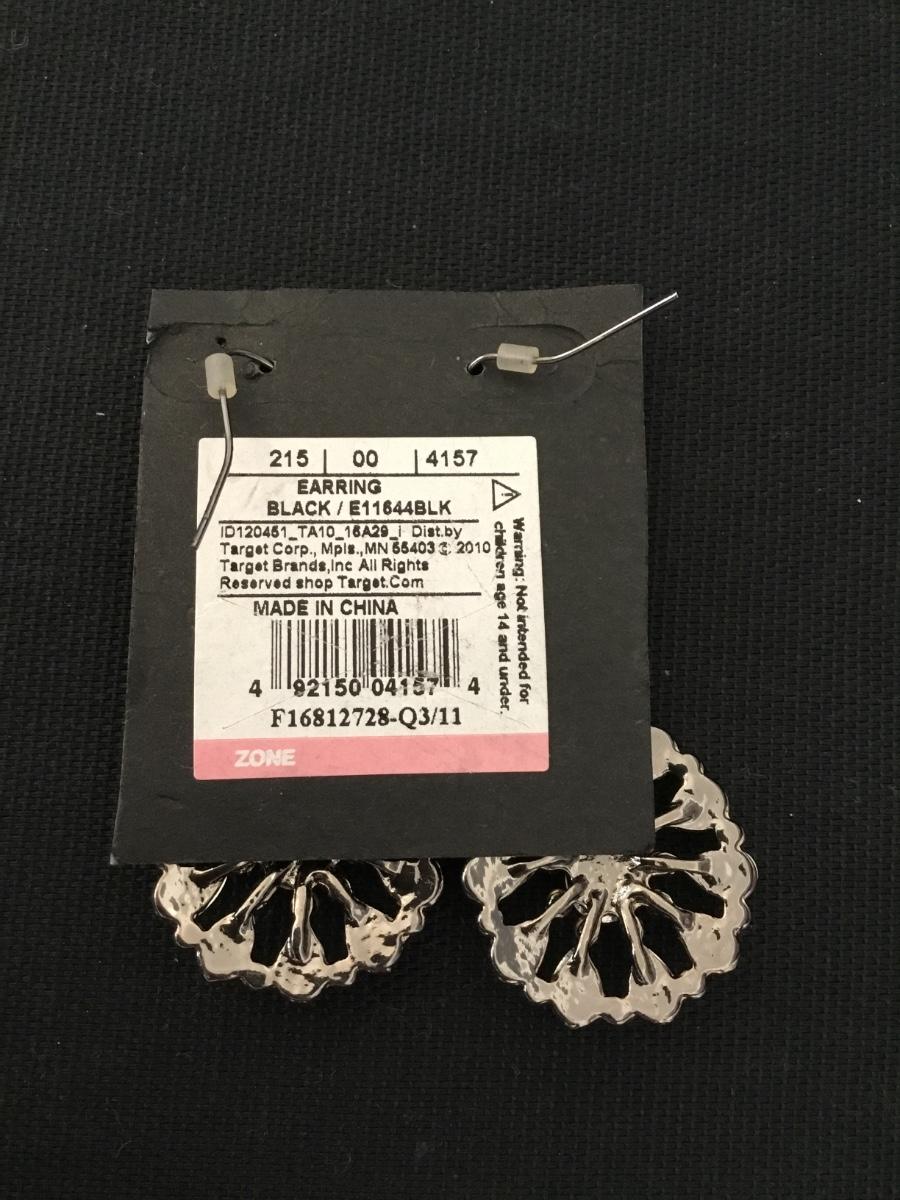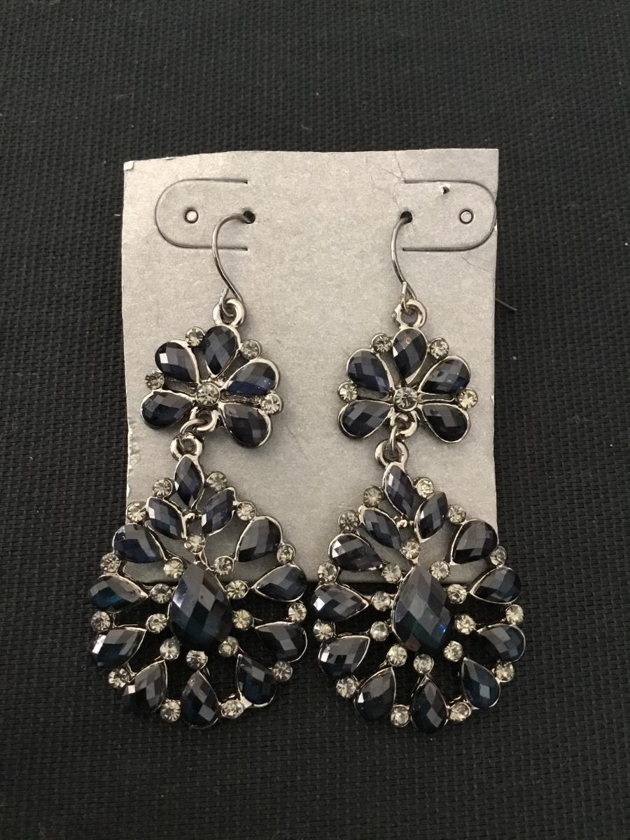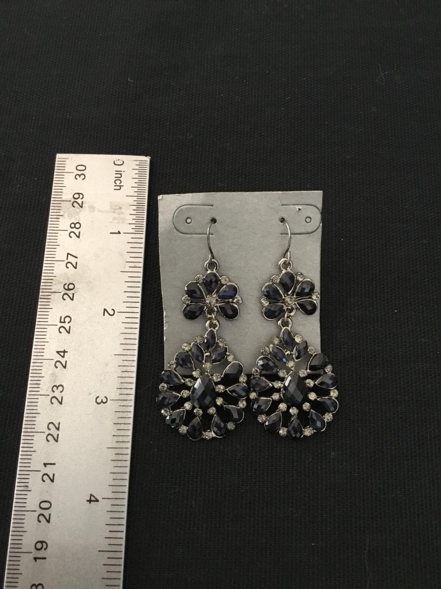 Cute silver tone jet black rhinestone dangle earrings