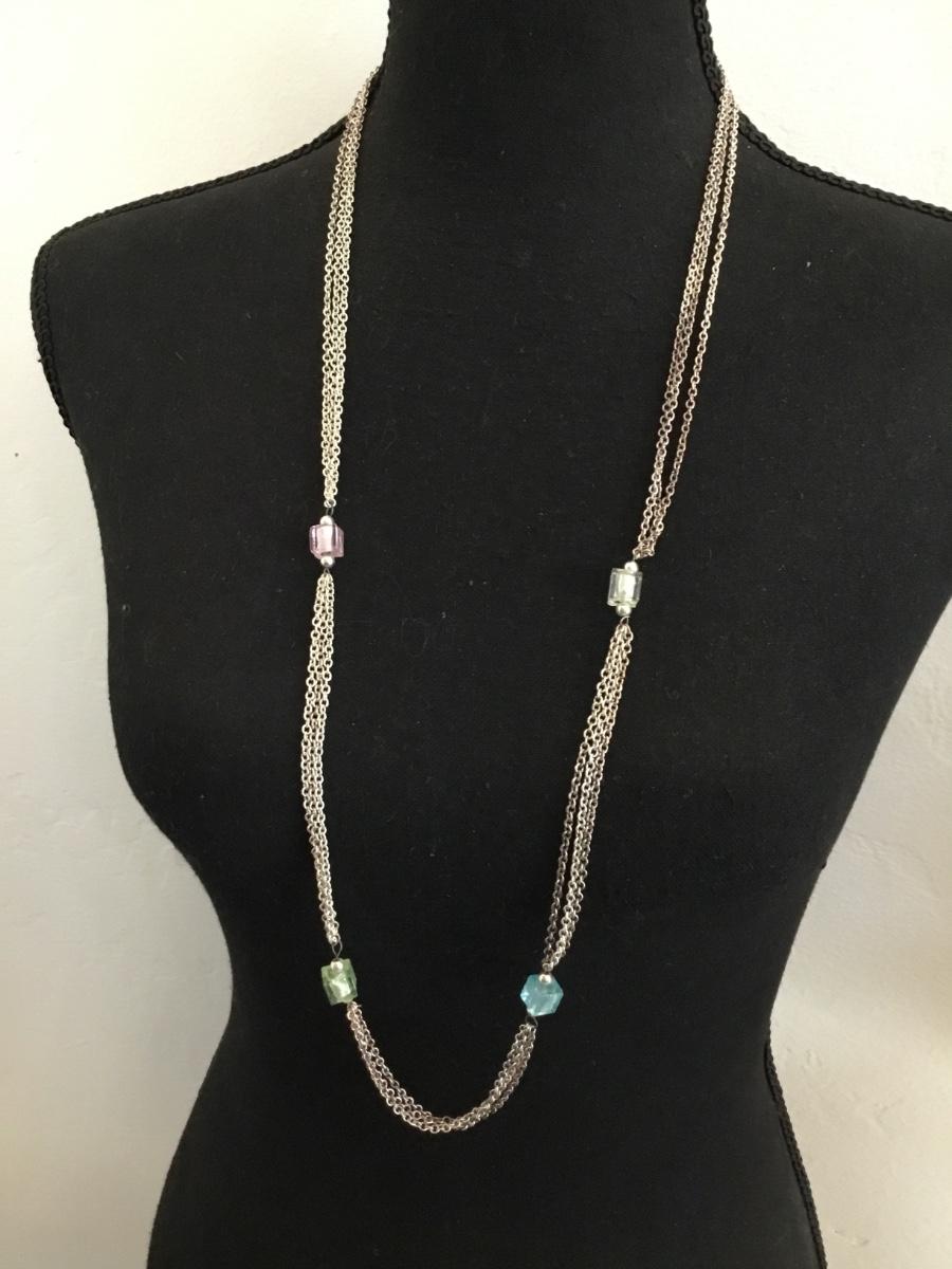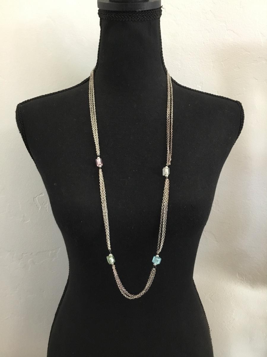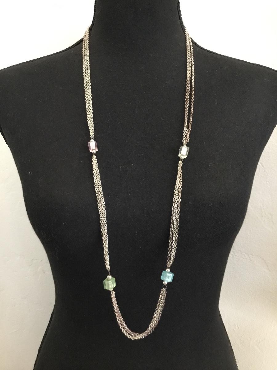 Cute, silver toned, multi colored glass, square, bead statement, necklace