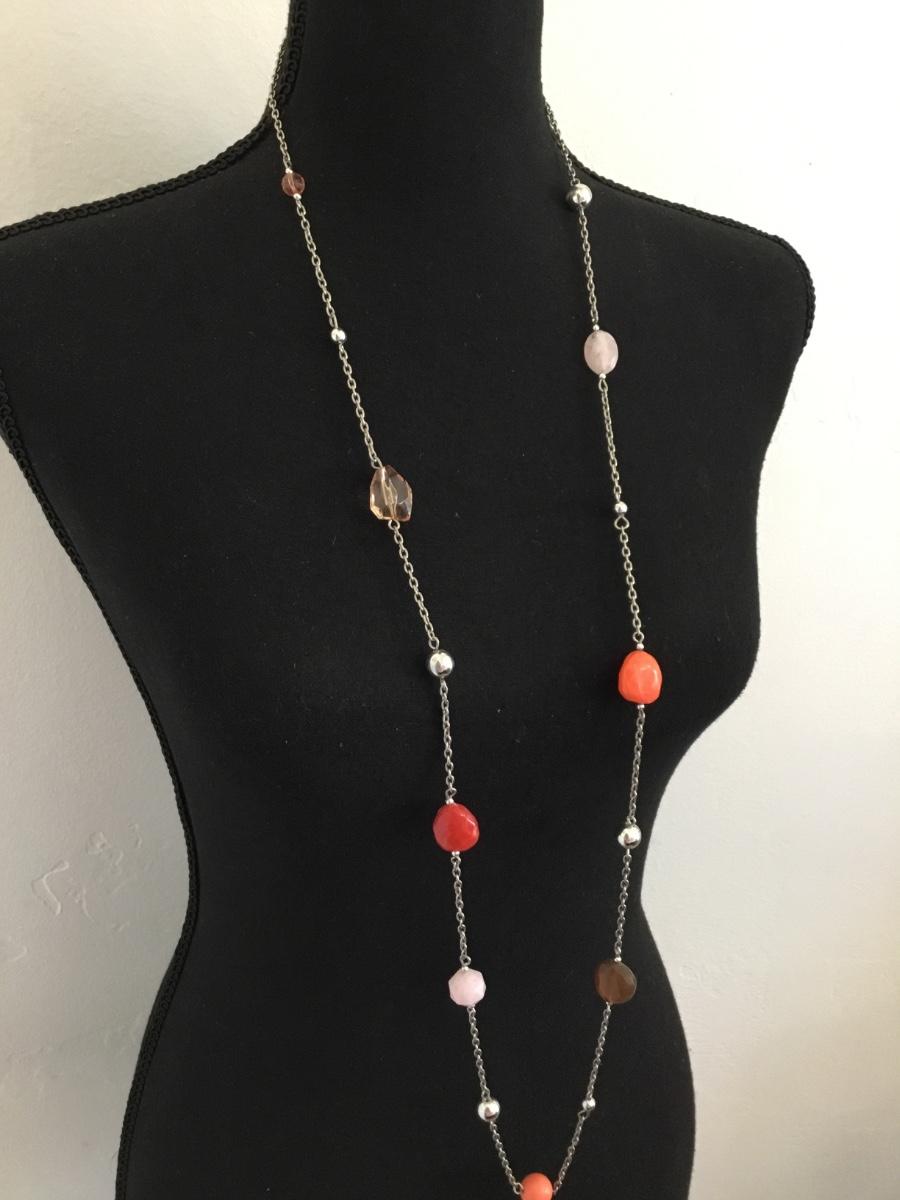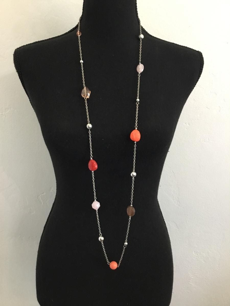 Cute Silver, toned, multicolored bead, fashion necklace