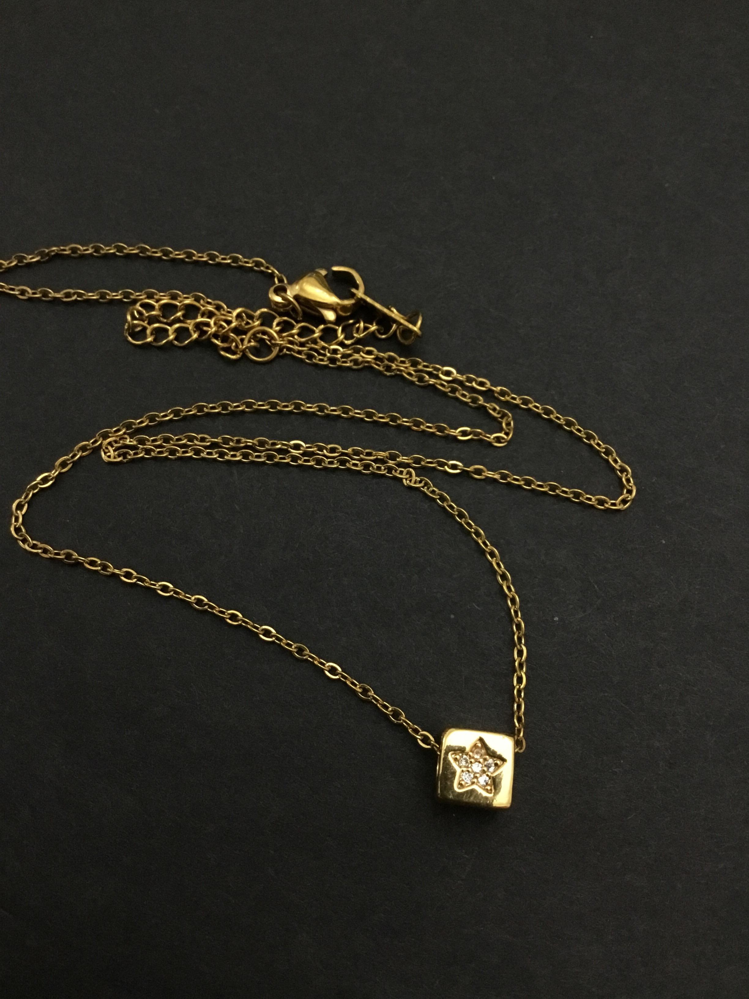 Cute stainless steel gold tone, crystal rhinestone Star bead necklace