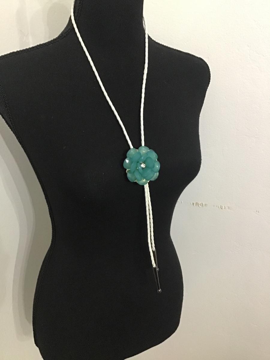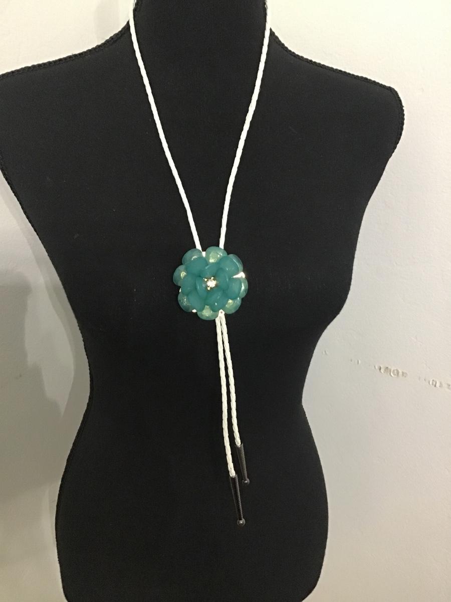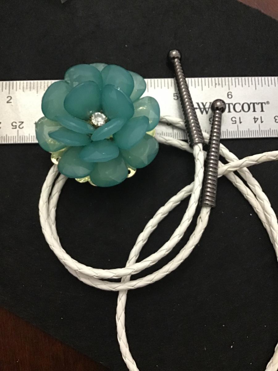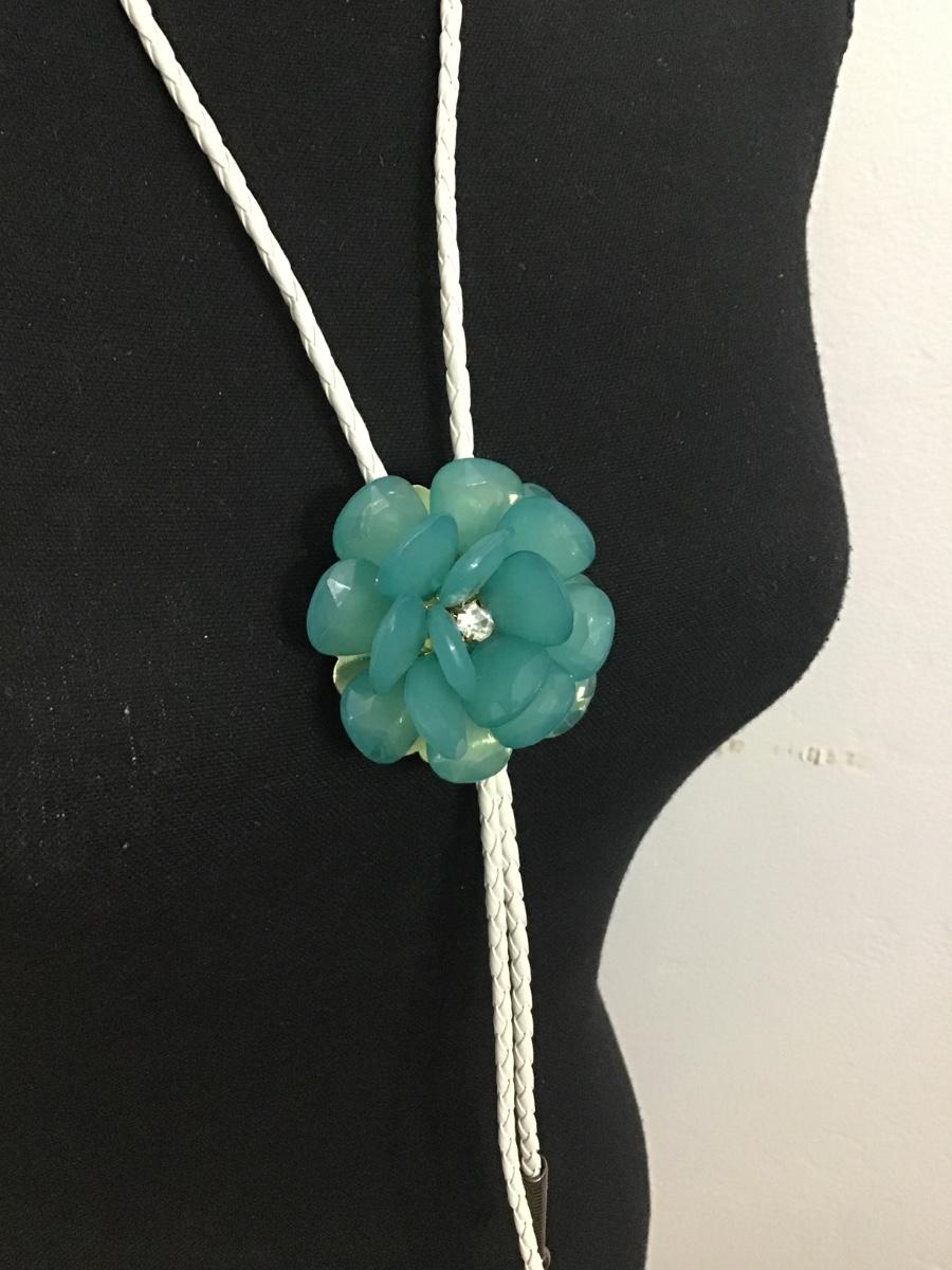 Cute Teal Bolo Tie Large Flower Rhinestone
