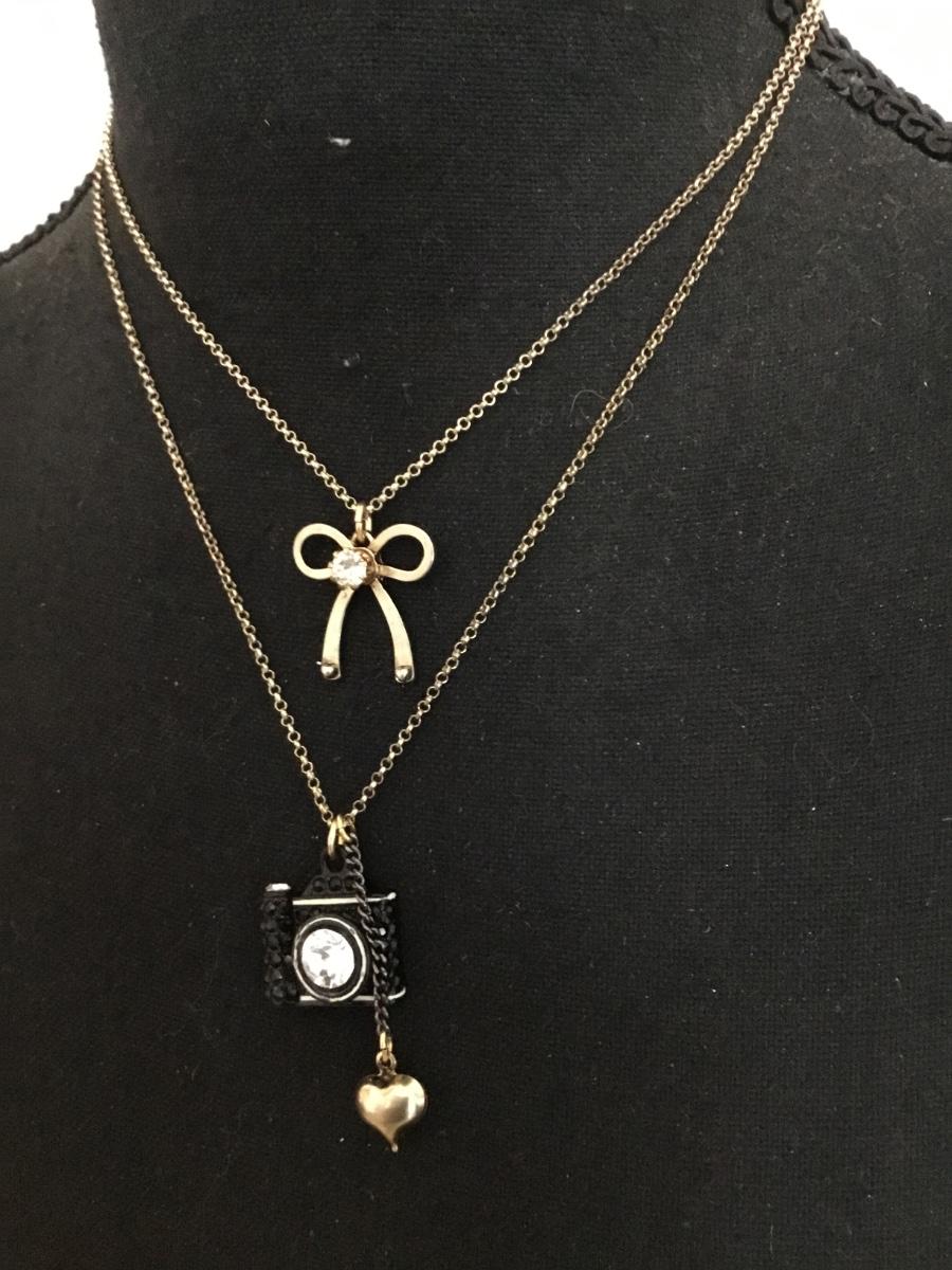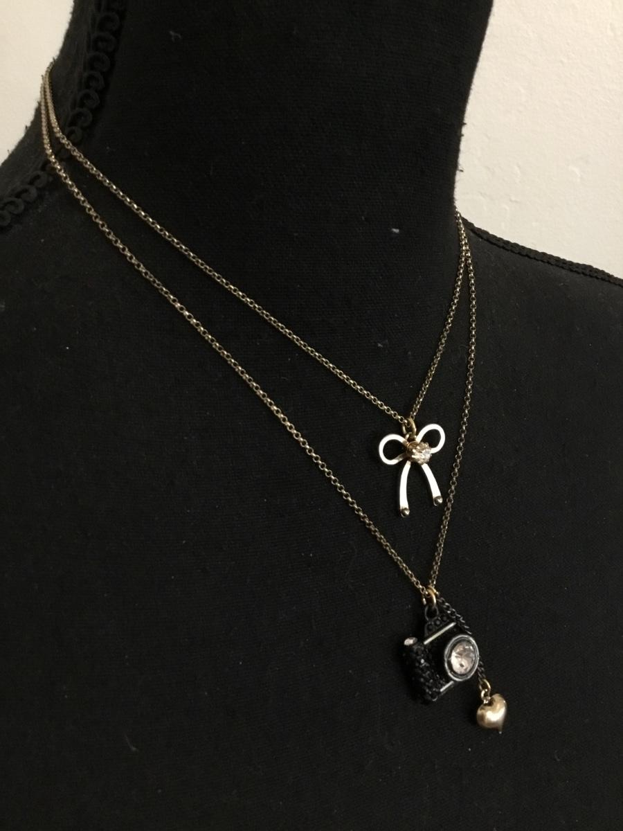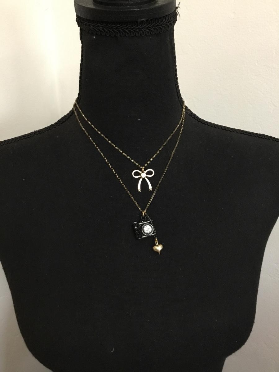 Cute vintage, Betsey Johnson, vintage camera, bow, layered necklace