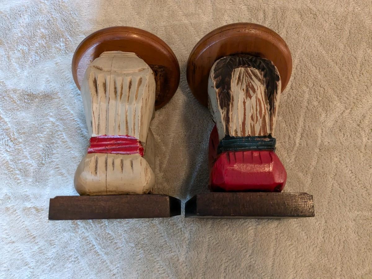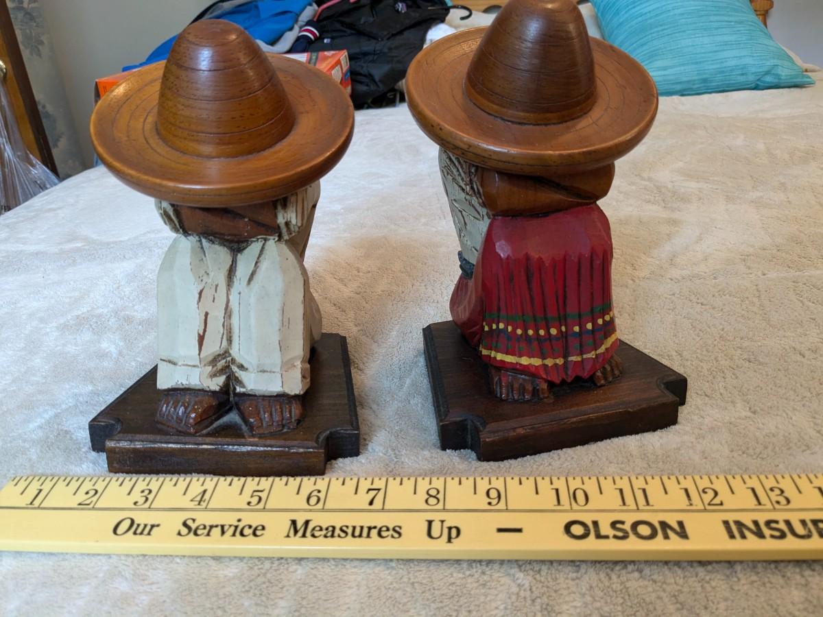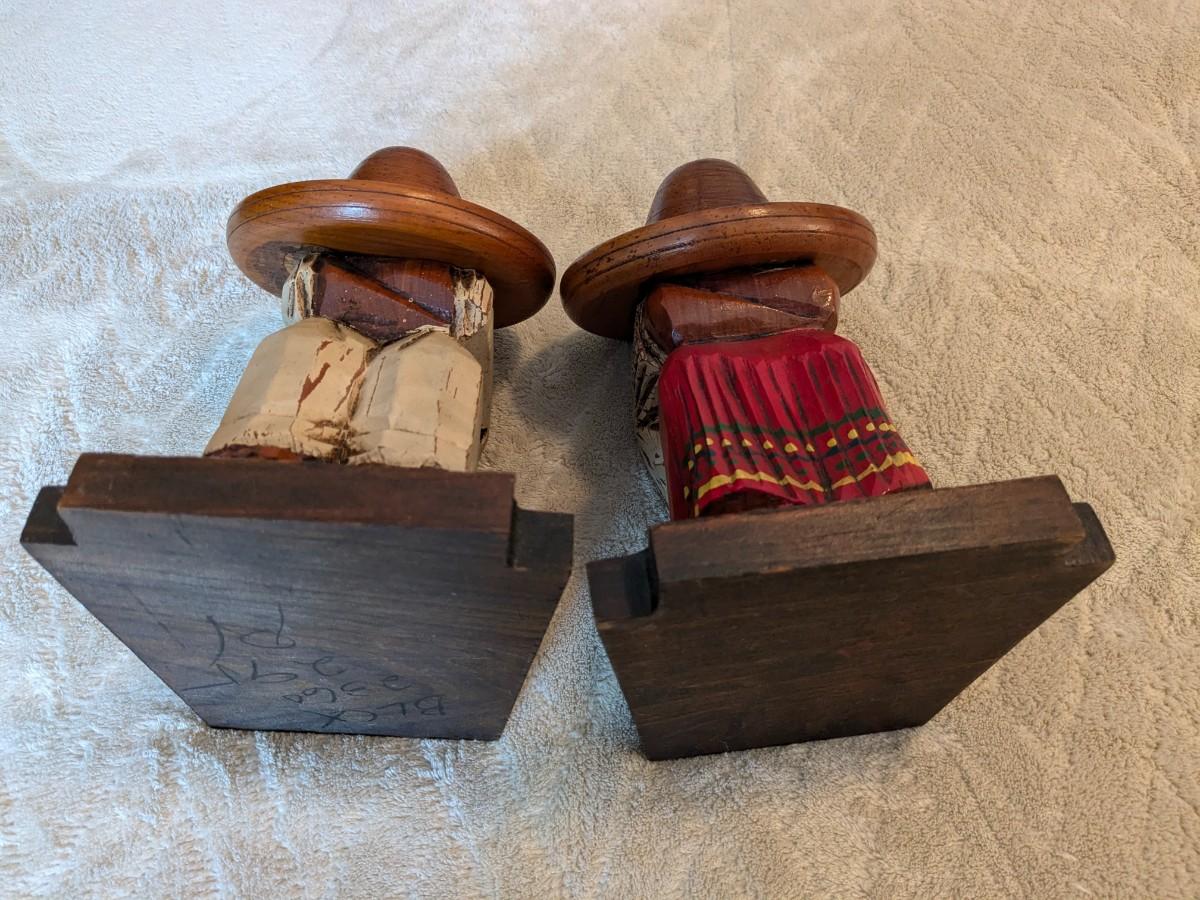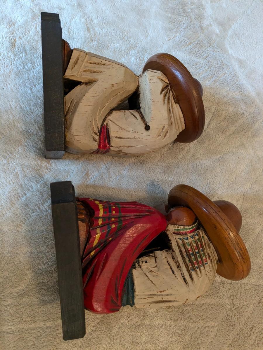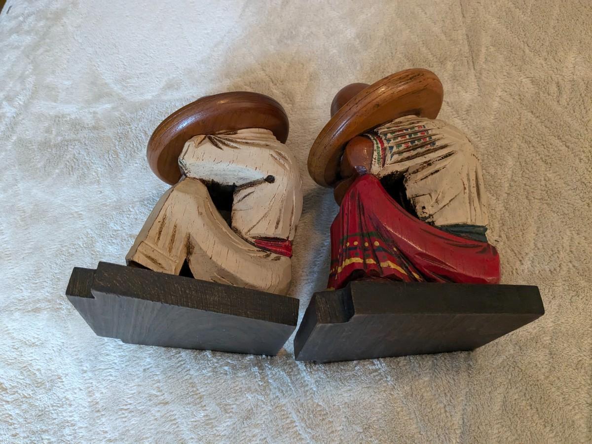 Cute Vintage Carved Wood Mexican Sombrero Bookends