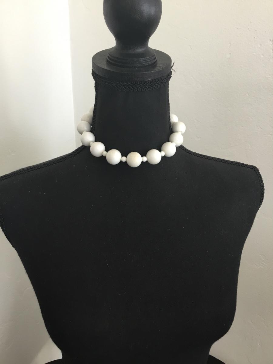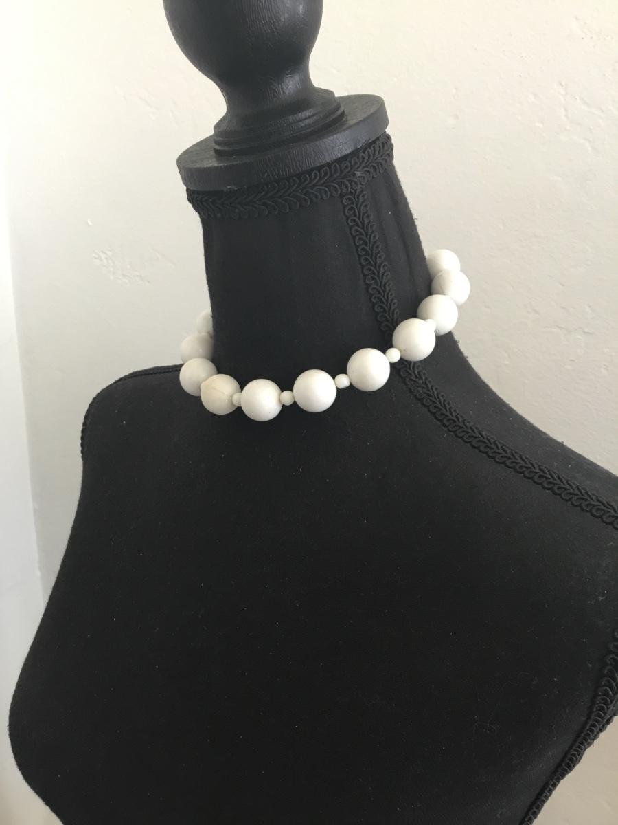 Cute vintage chunky white bead choker necklace