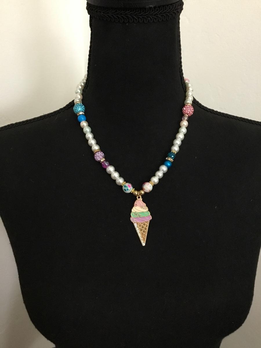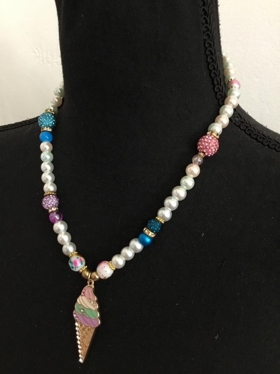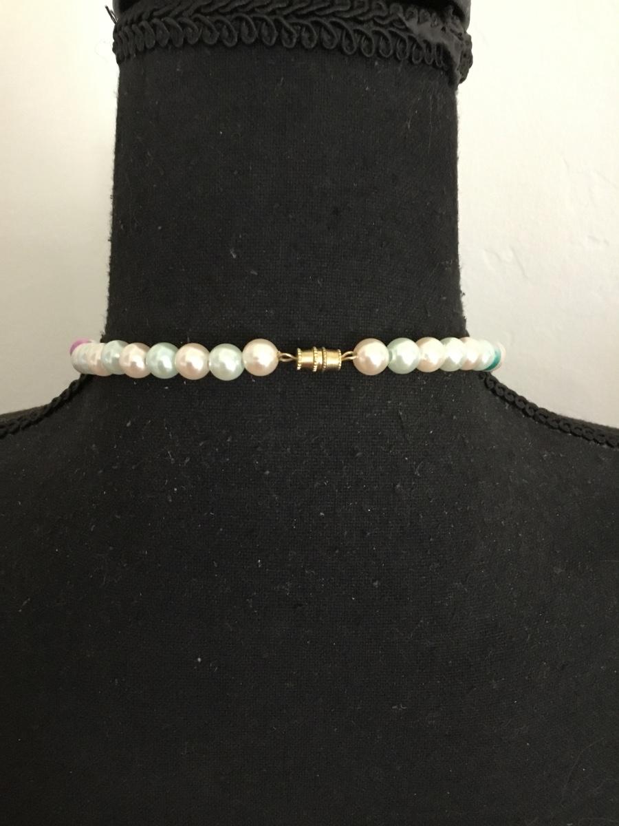 Cute vintage faux, pearl jawbreaker, glass bead, necklace barrel clasp