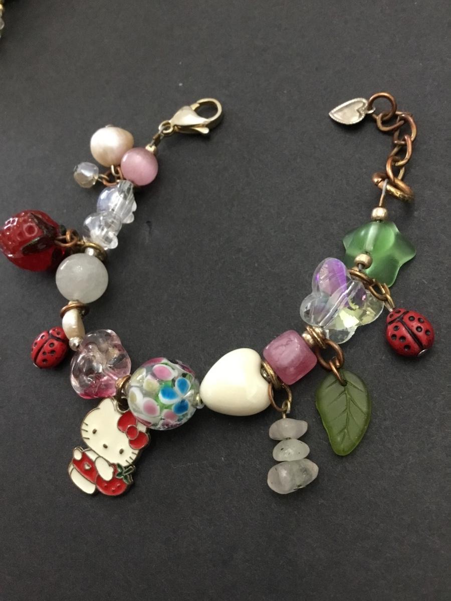 Cute vintage glass and crystal. Hello Kitty charm bracelet.