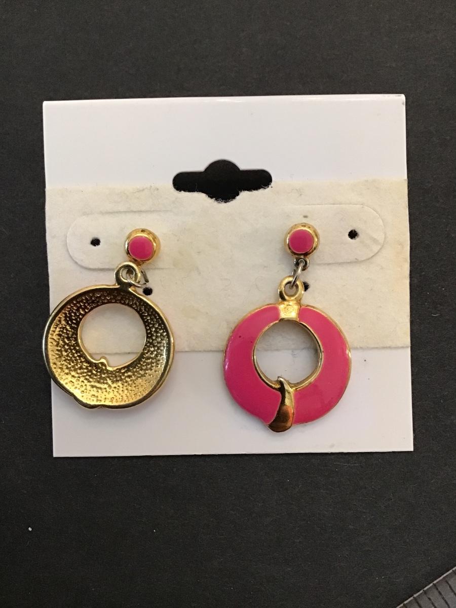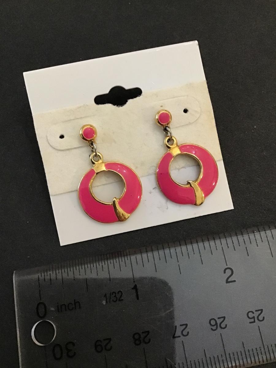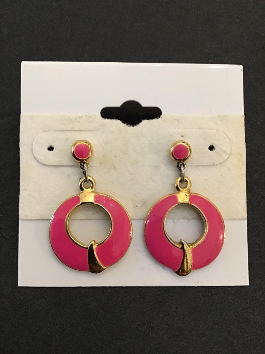 Cute, vintage, hot pink enamel gold tone, dangle earrings