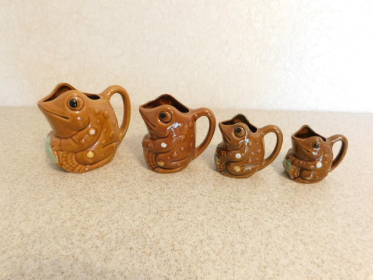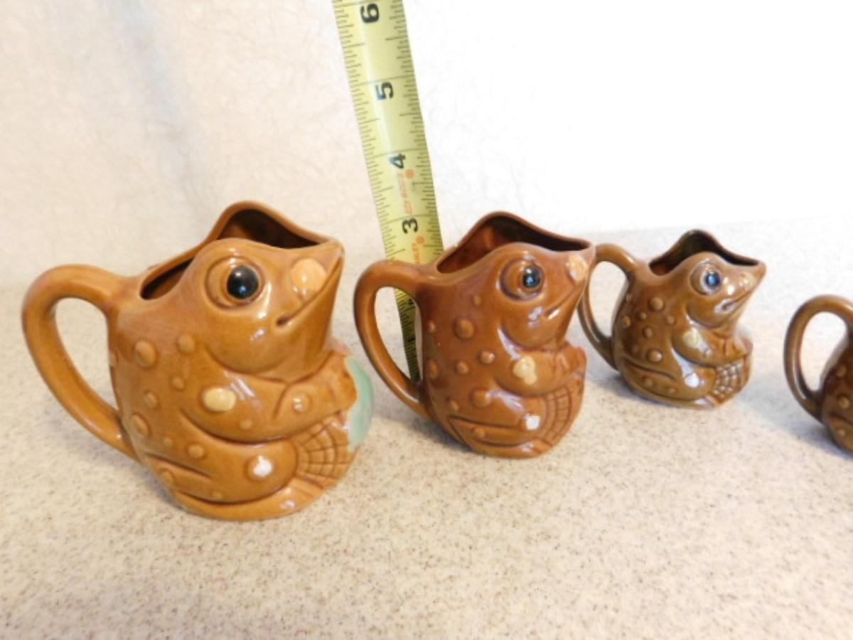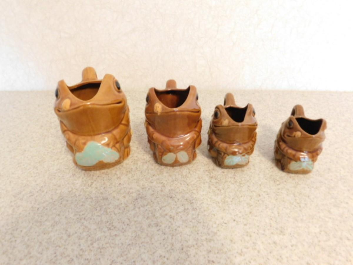 Cute Vintage Japanese Pottery Frog Family Measuring Cups