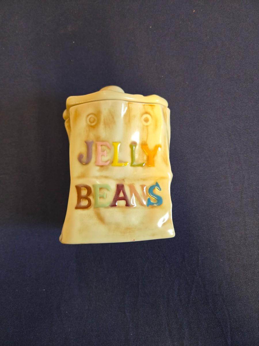 4.5 inch tall ceramic Jelly Bean container with lid.