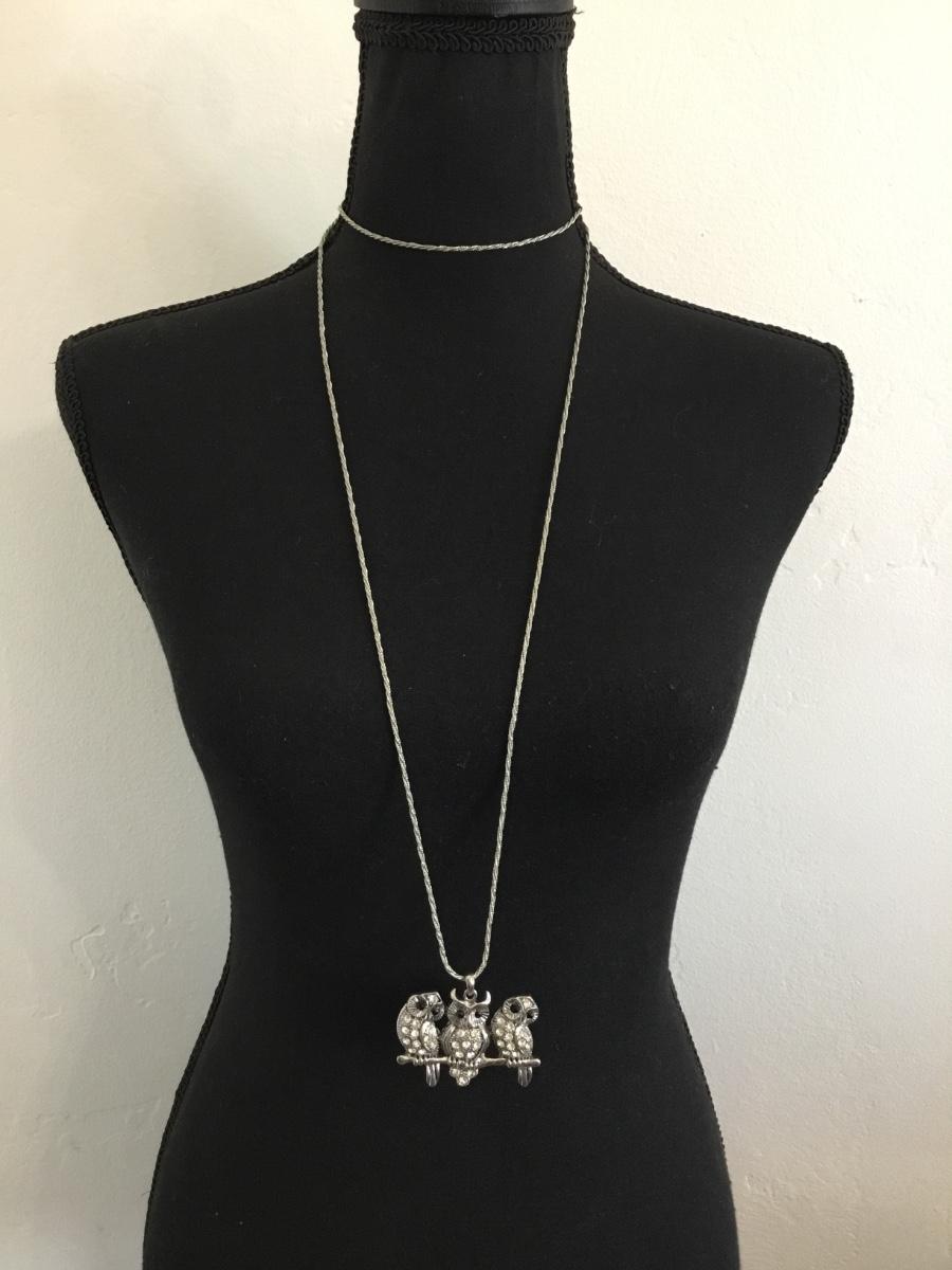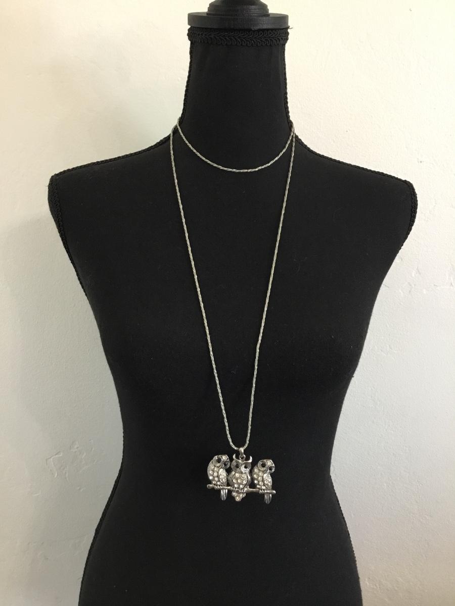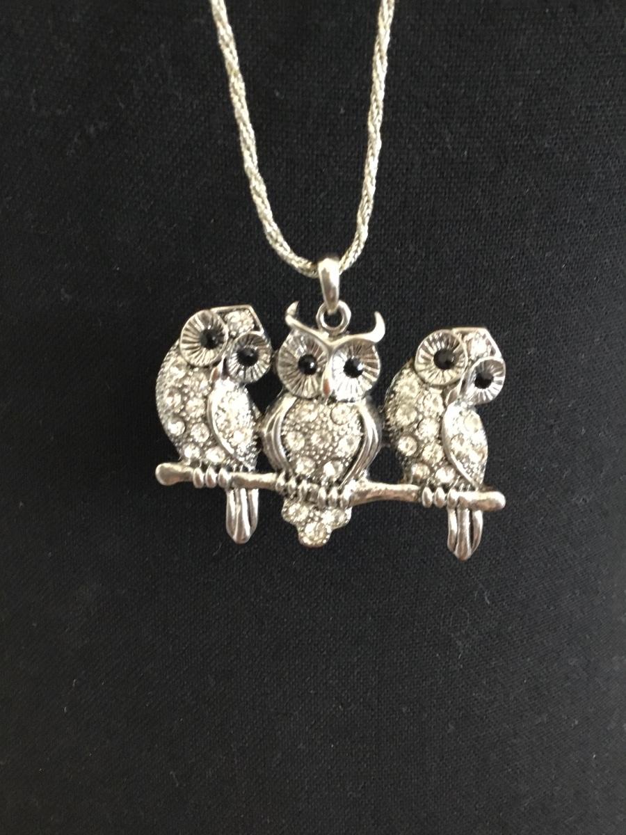 Cute vintage little owl pendant and silver chain necklace