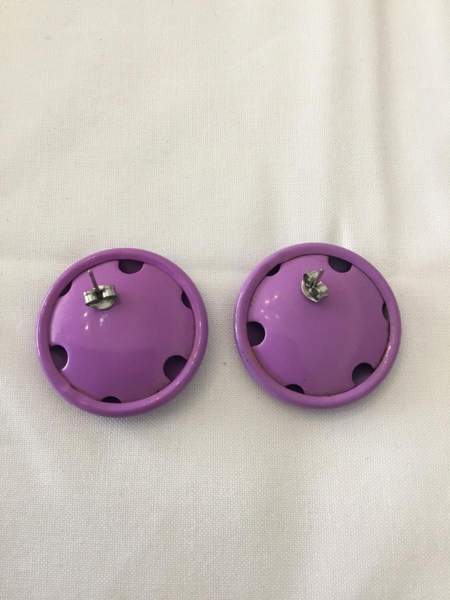Cute vintage Metal, purple, enameled, circular stud earrings