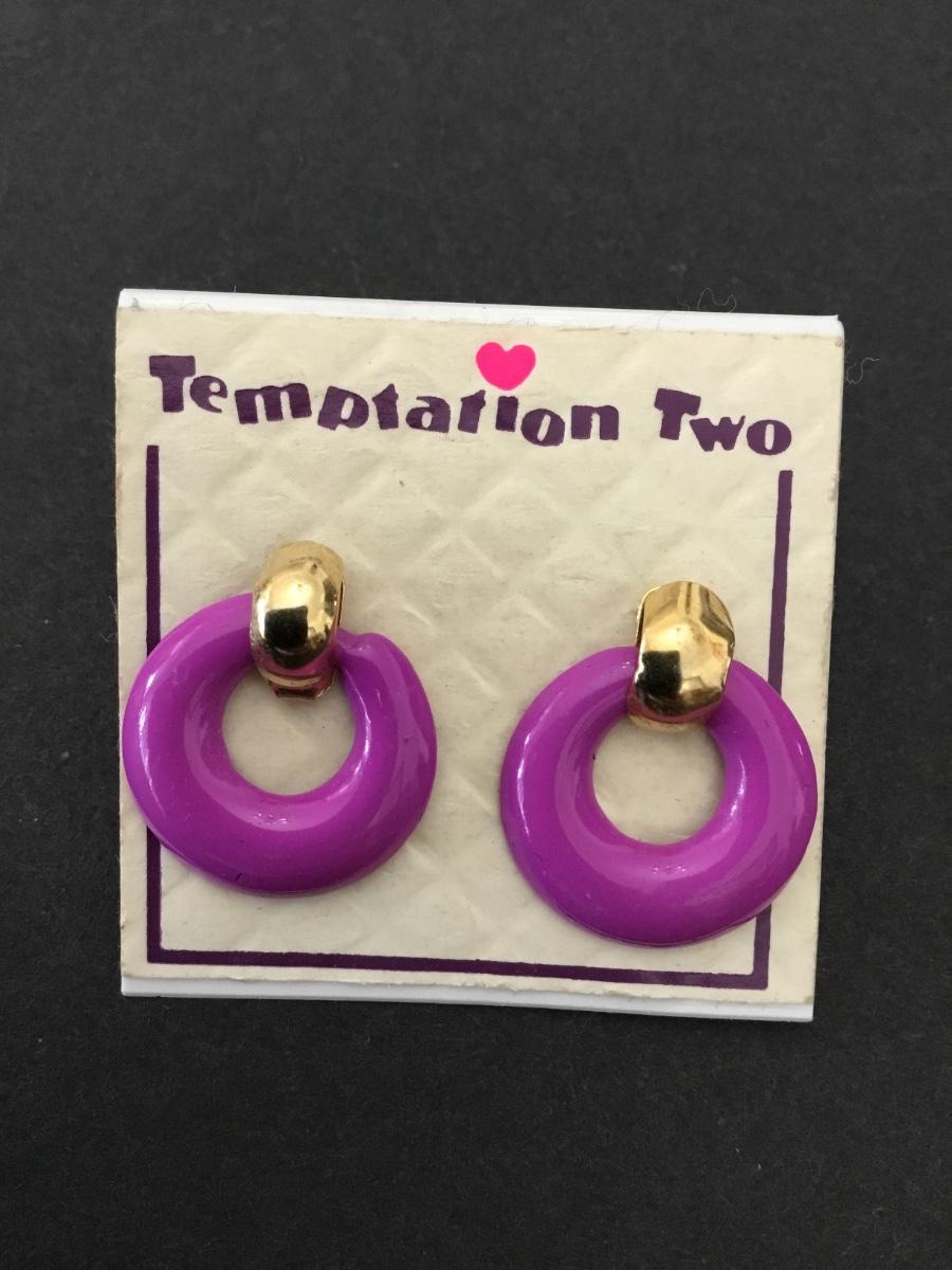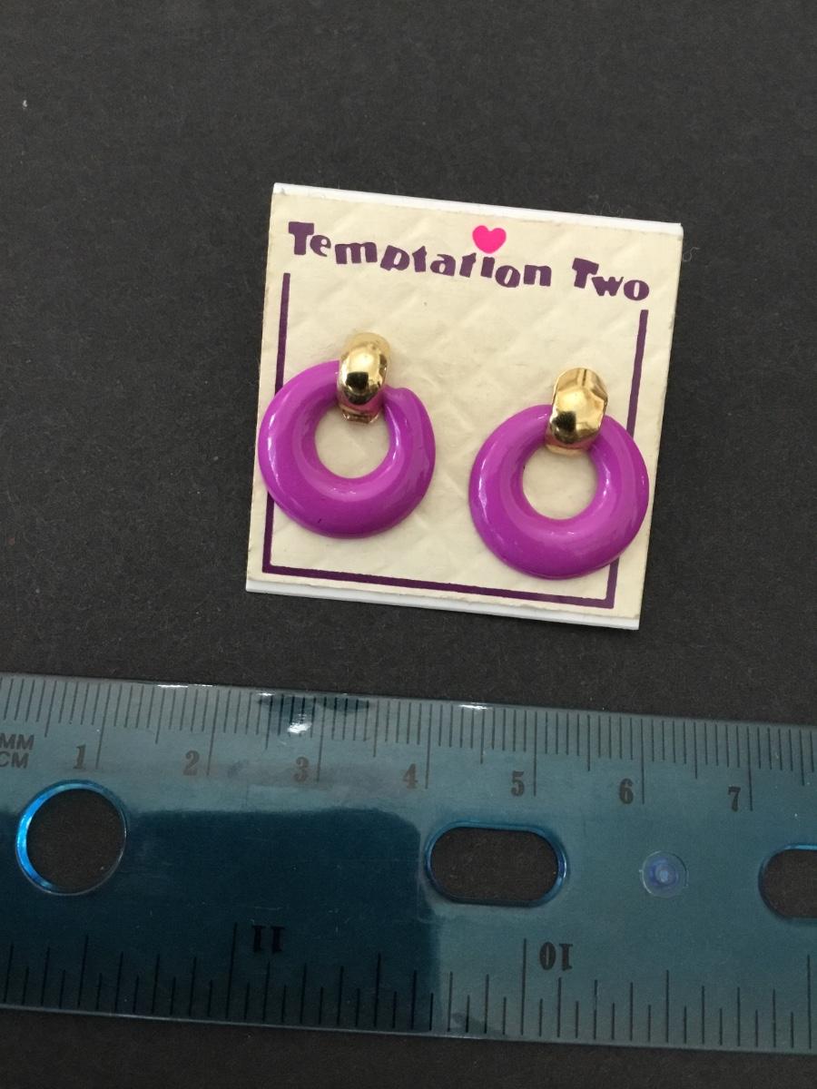 Cute, vintage, purple enamel hoop, stud earrings