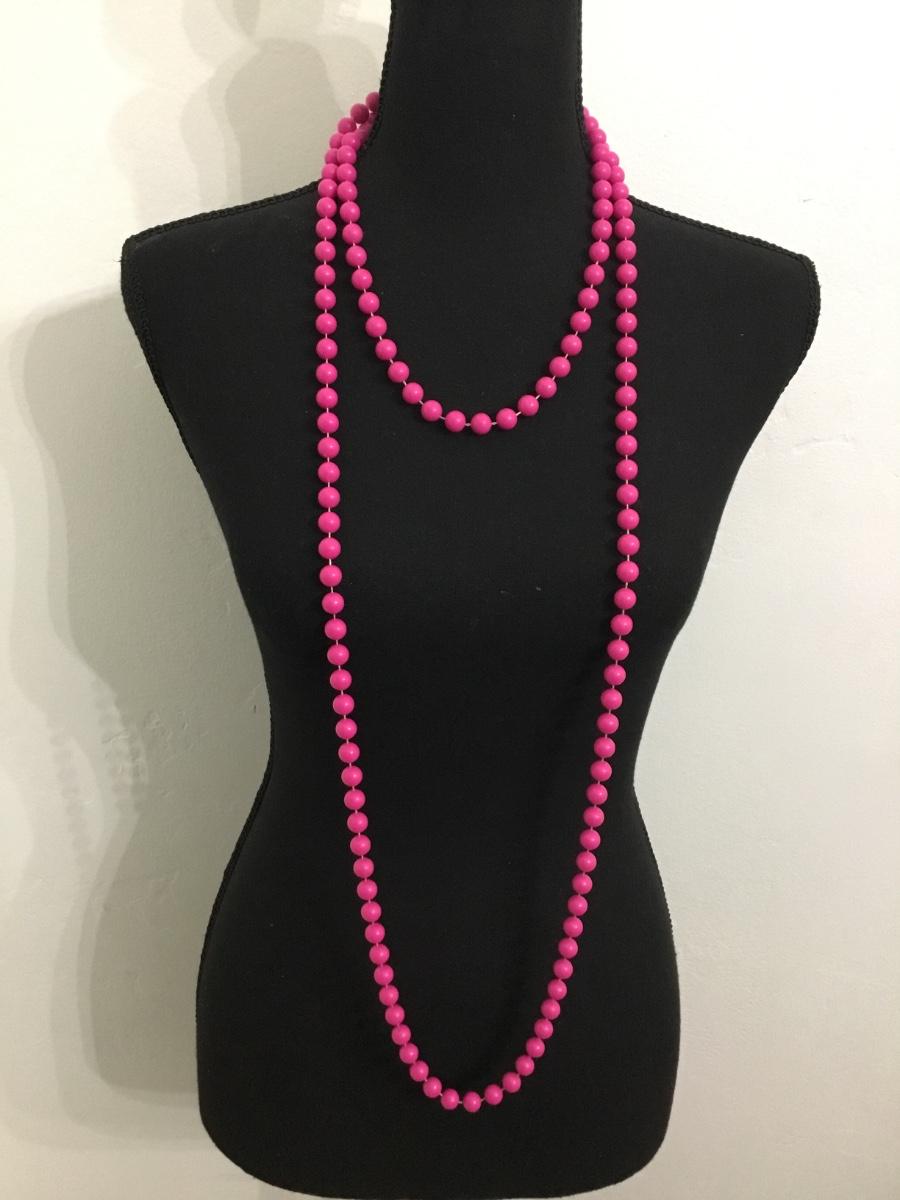 Cute vintage raspberry pink beaded flapper style beaded necklace
