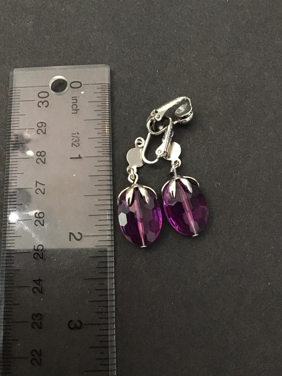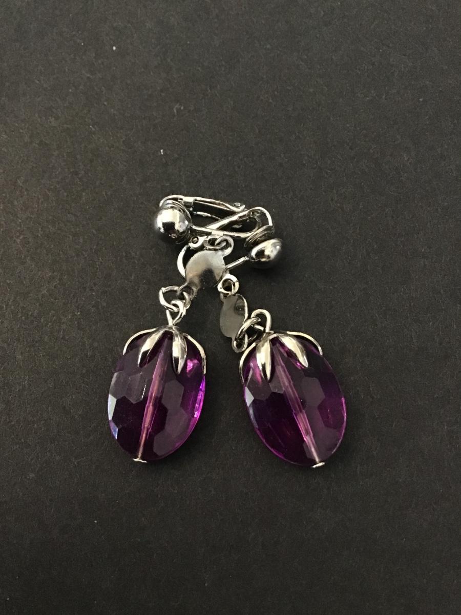 Cute vintage Sarah Coventry grape glass colored dangle clip on earrings