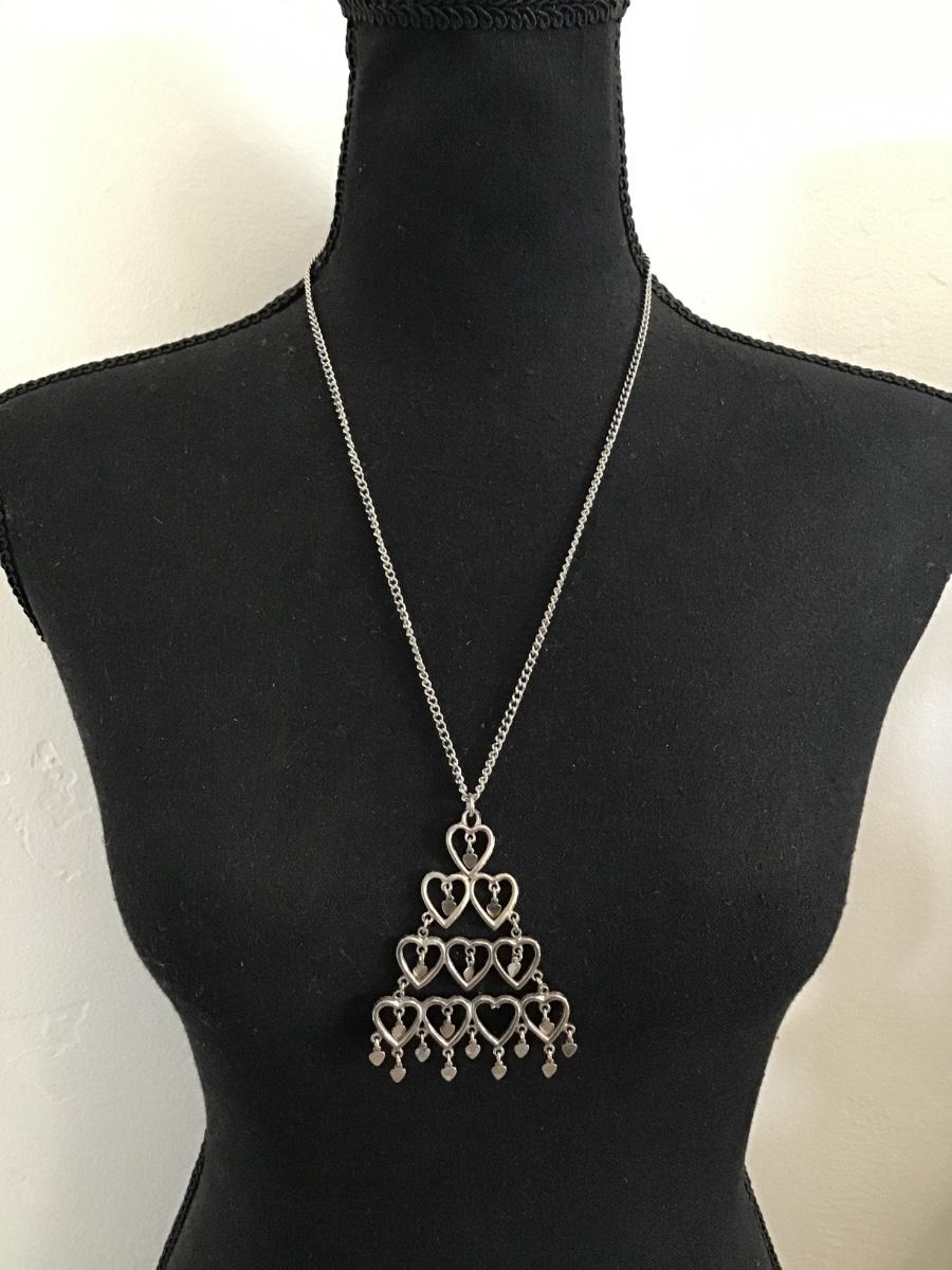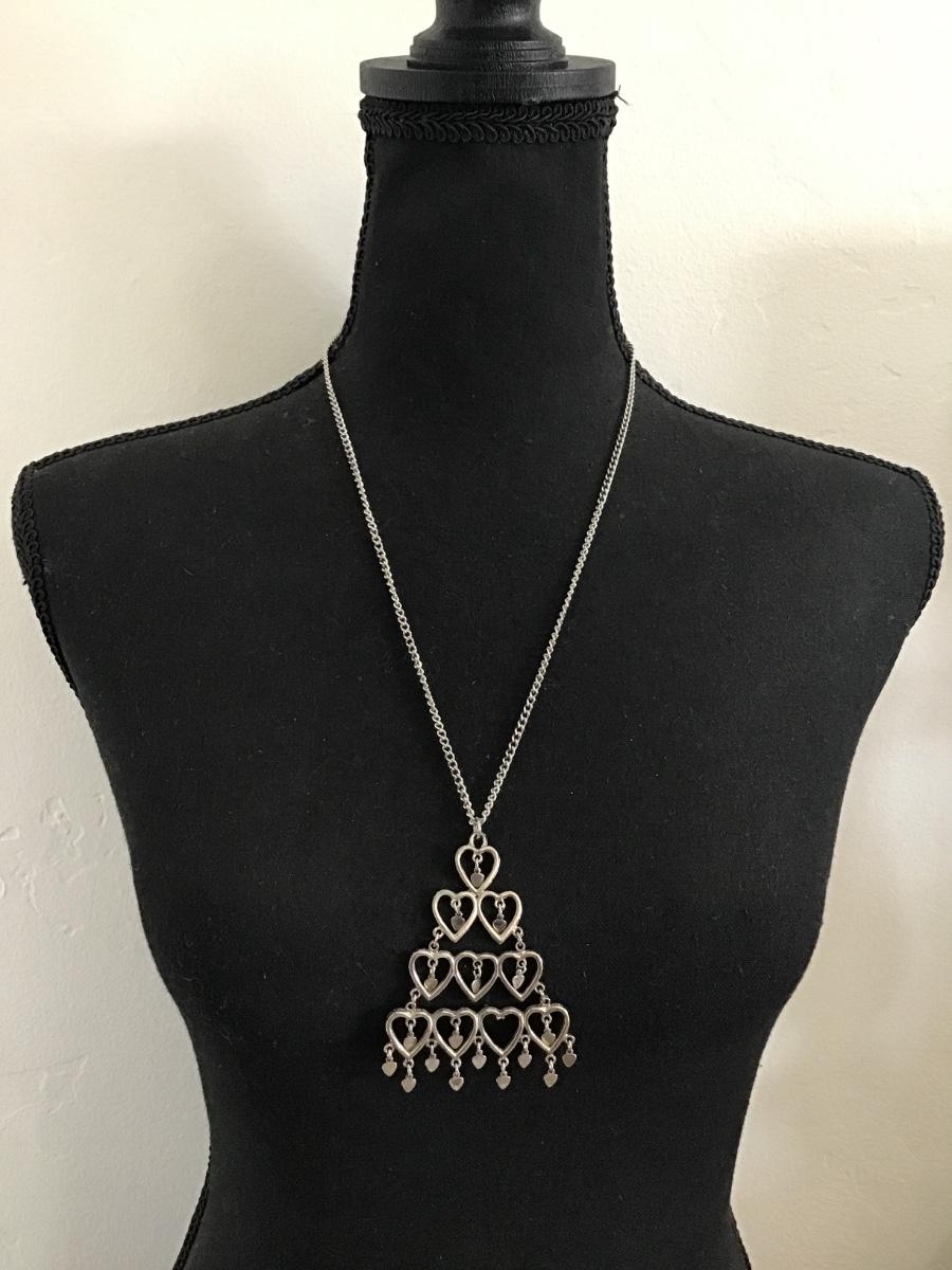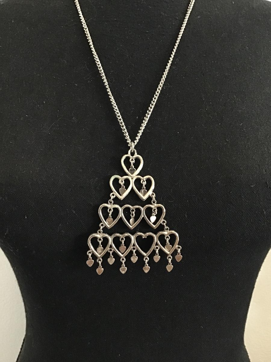 Cute vintage, Silvertone heart waterfall, necklace, missing heart stone