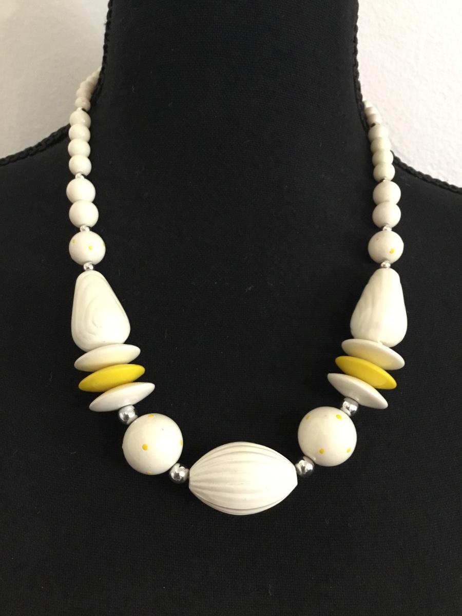 Cute vintage, yellow polkadot, beaded statement, necklace