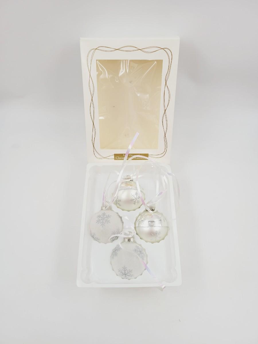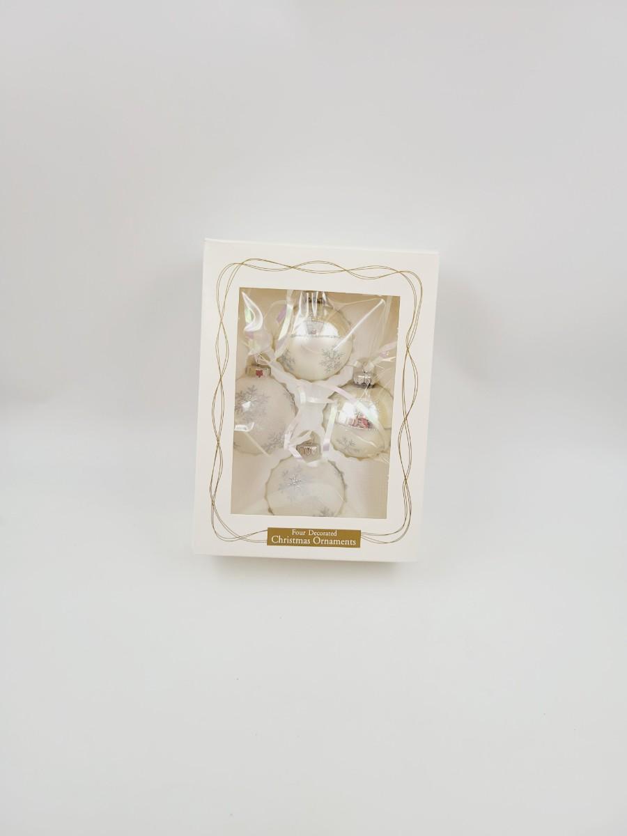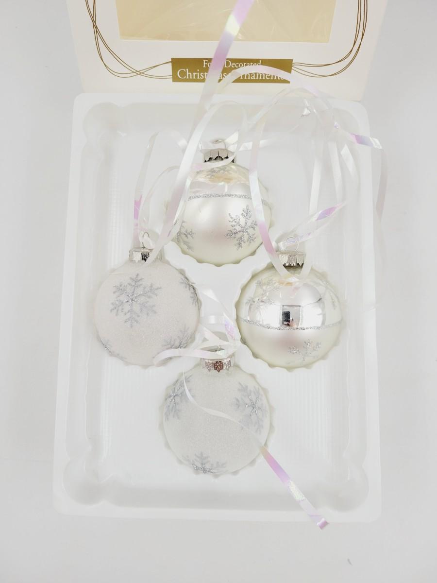 CUTE WHITE & SILVER TONED BALL ORNAMENTS