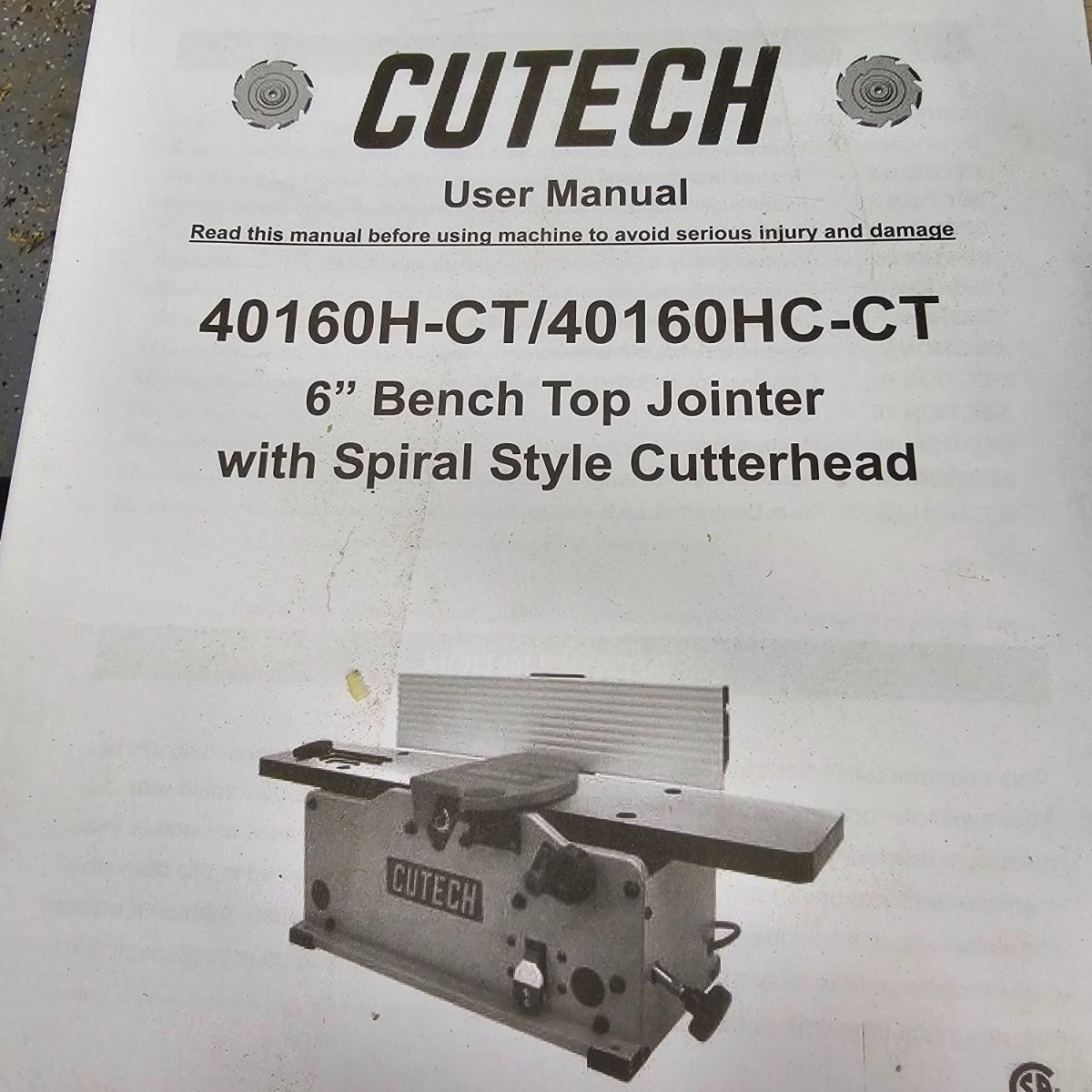 Compact desktop size Cutech joiner on a floor stand. Cutting capacity is 6", has dust chute and measures 40" x 24" x 47"H on stand. Shop fox stand has rolling casters, wood top. Joiner is sitting on stand, not attached at this time. Unit powered on when plugged in. Has manual and tool set. See photos for details. Local pickup only. Winning bidder must bring assistance to help move and load this item due to its weight and/or size.
