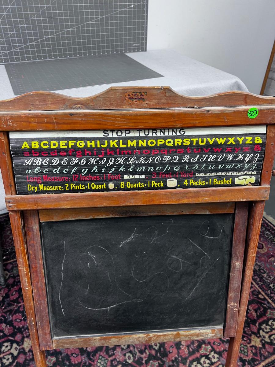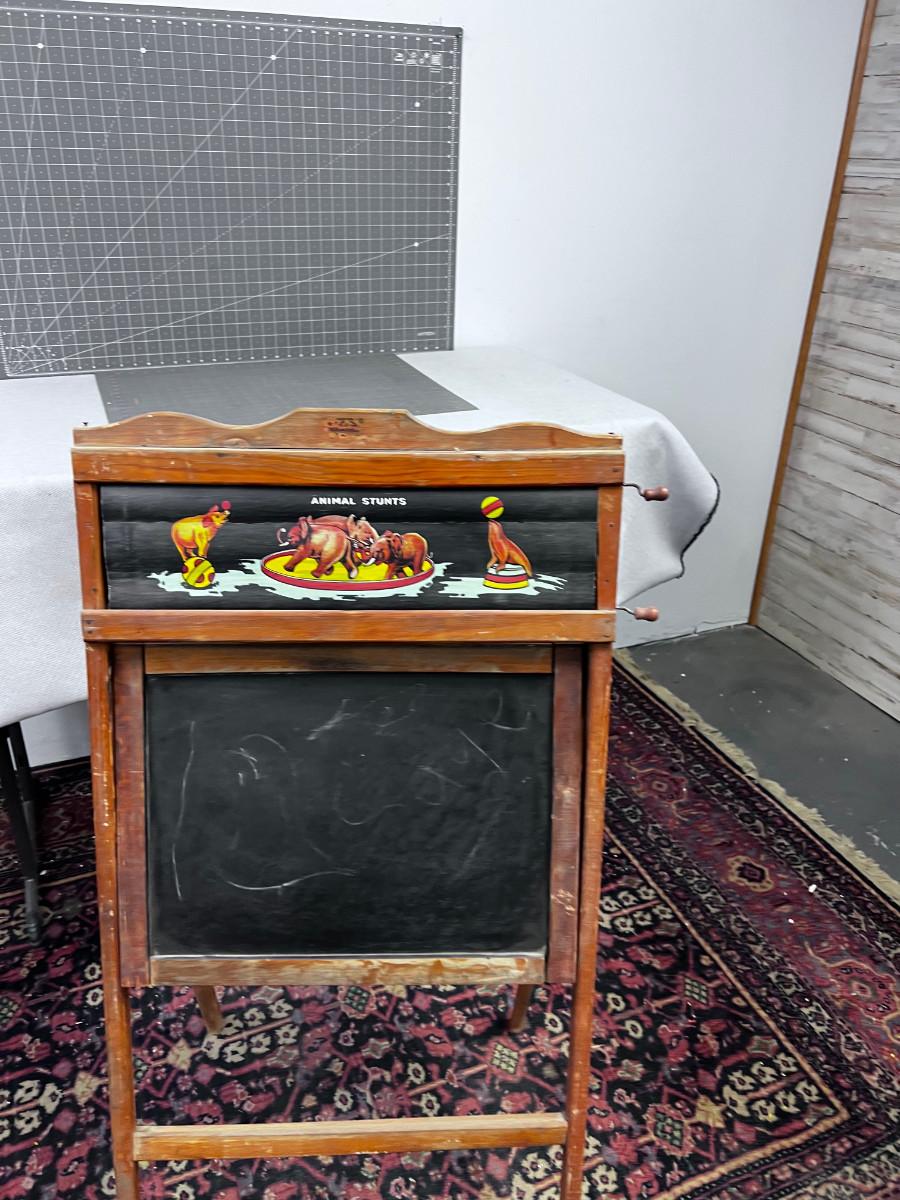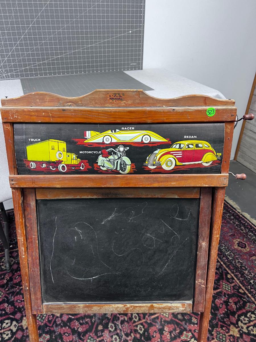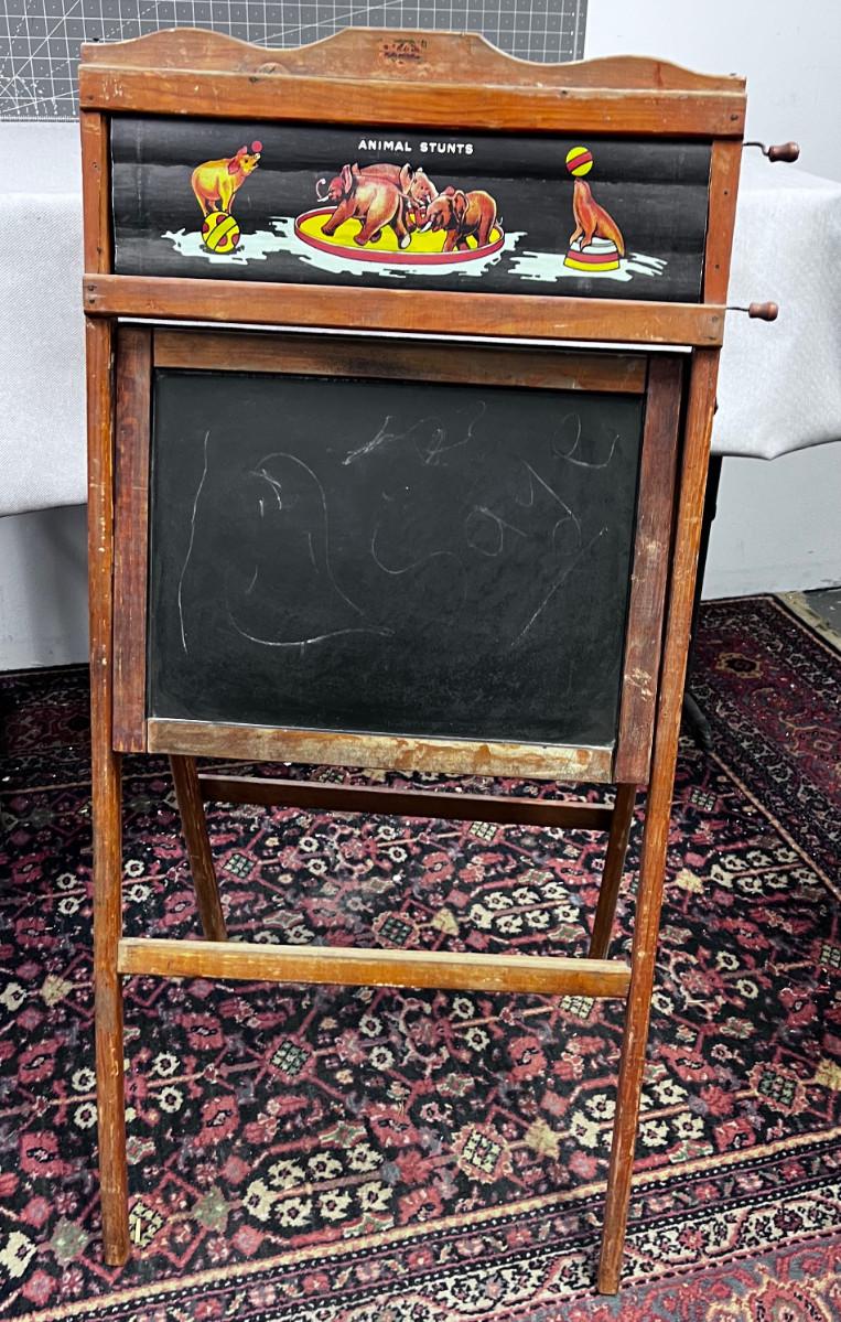 Cutest Chalk Board Stand EVER! Has Scroll of Letters, Animals, Cars, Flags etc. About 10 Scenes. OLD