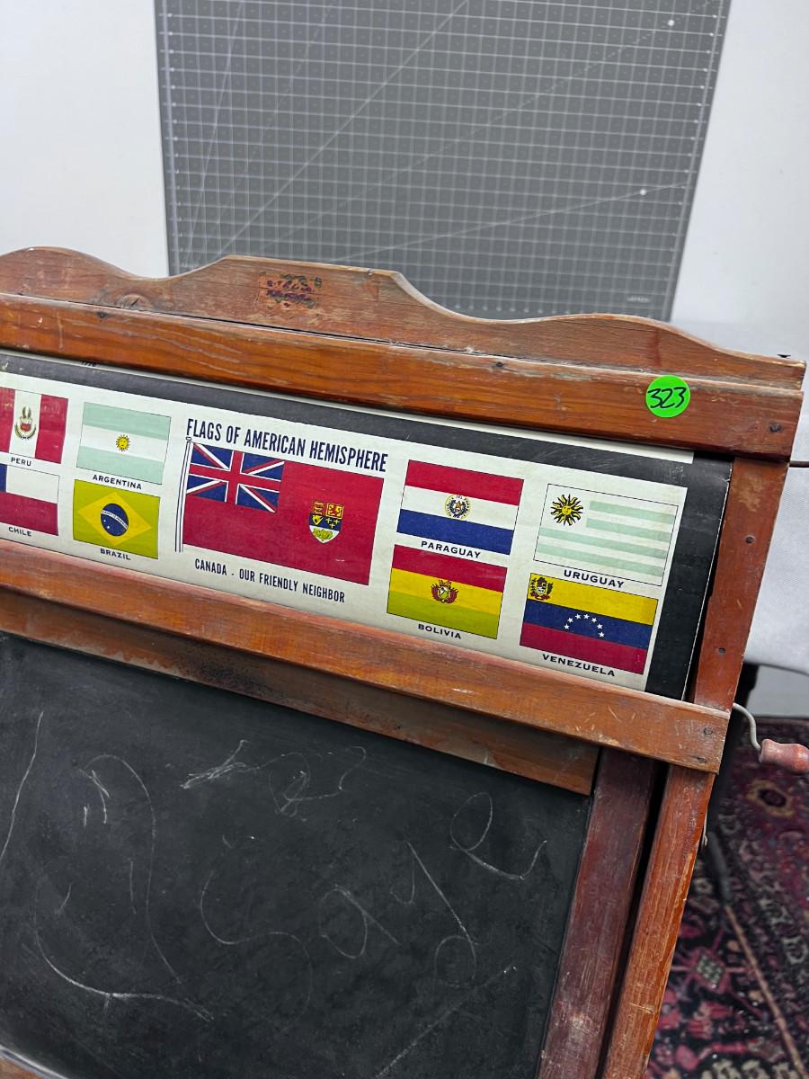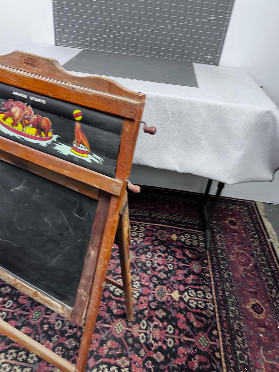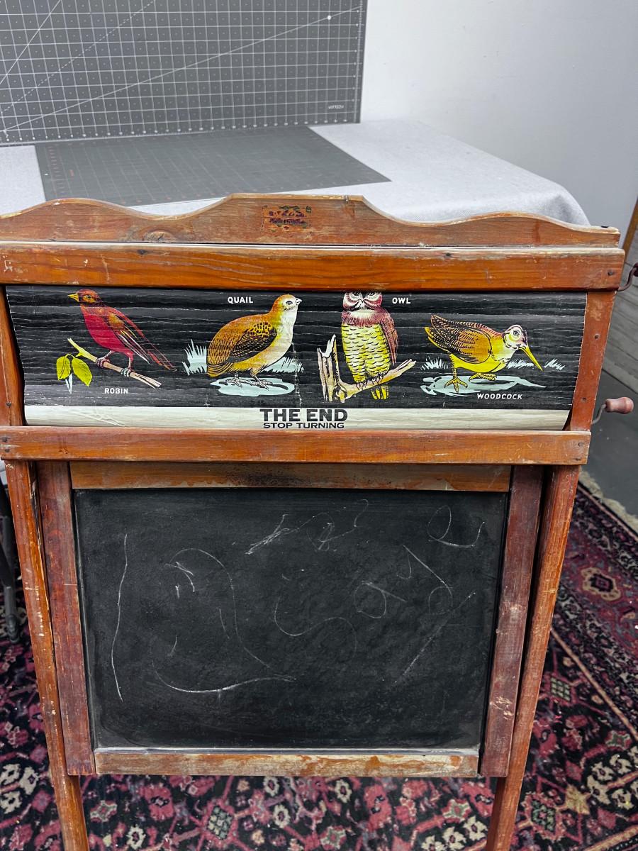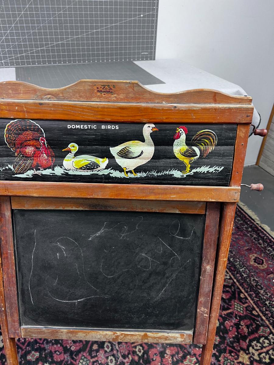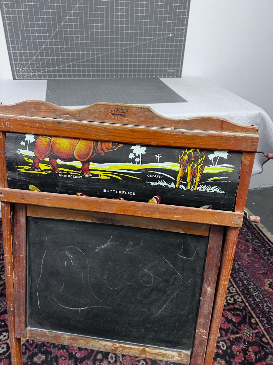 Cutest Chalk Board Stand EVER! Has Scroll of Letters, Animals, Cars, Flags etc. About 10 Scenes. OLD