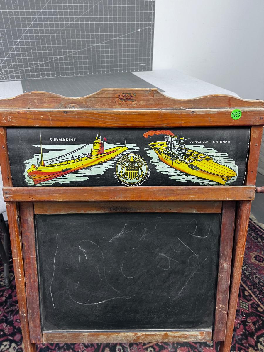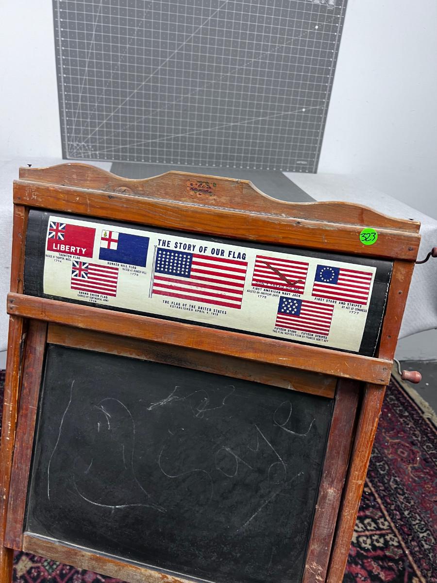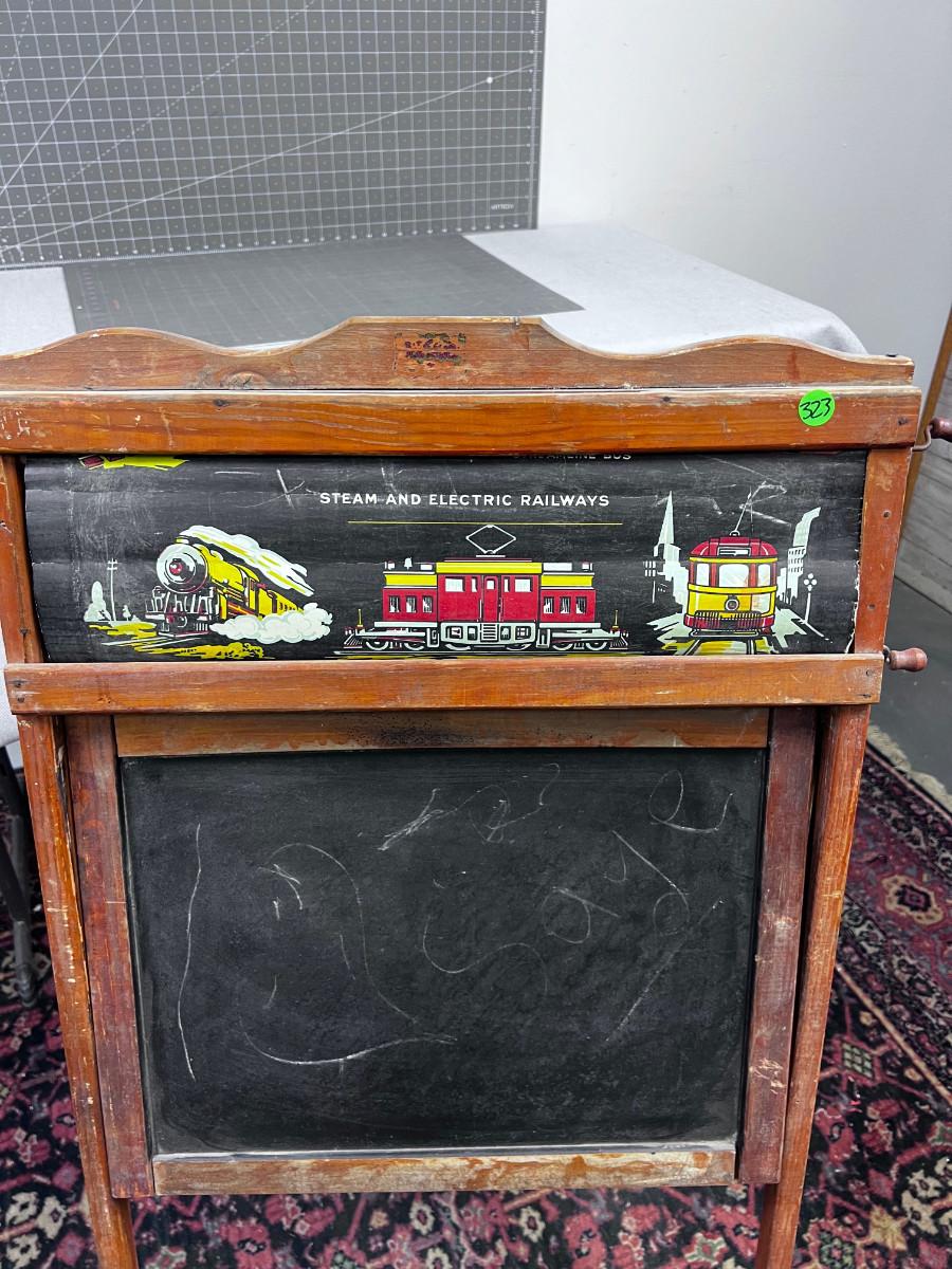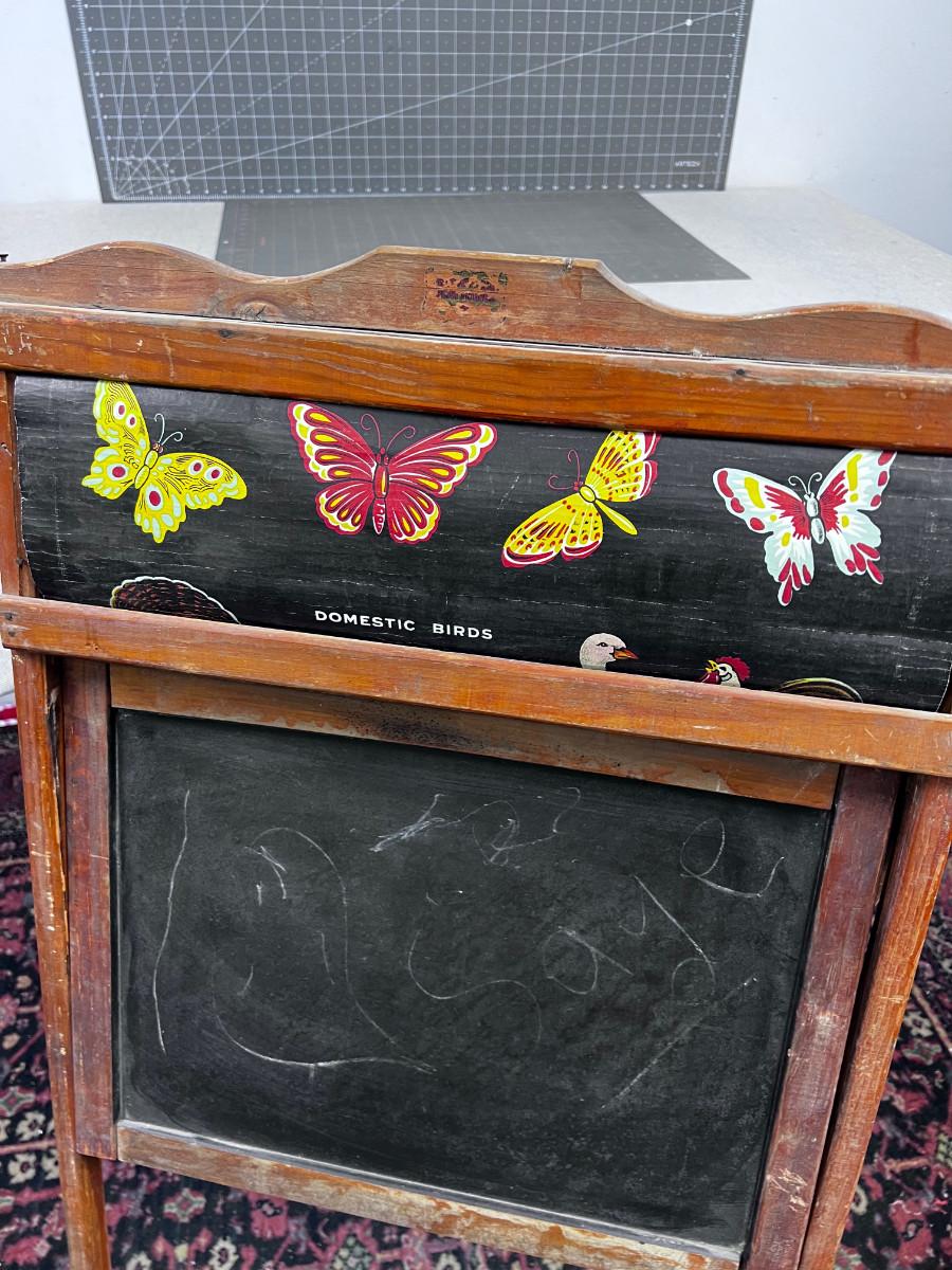 Cutest Chalk Board Stand EVER! Has Scroll of Letters, Animals, Cars, Flags etc. About 10 Scenes. OLD