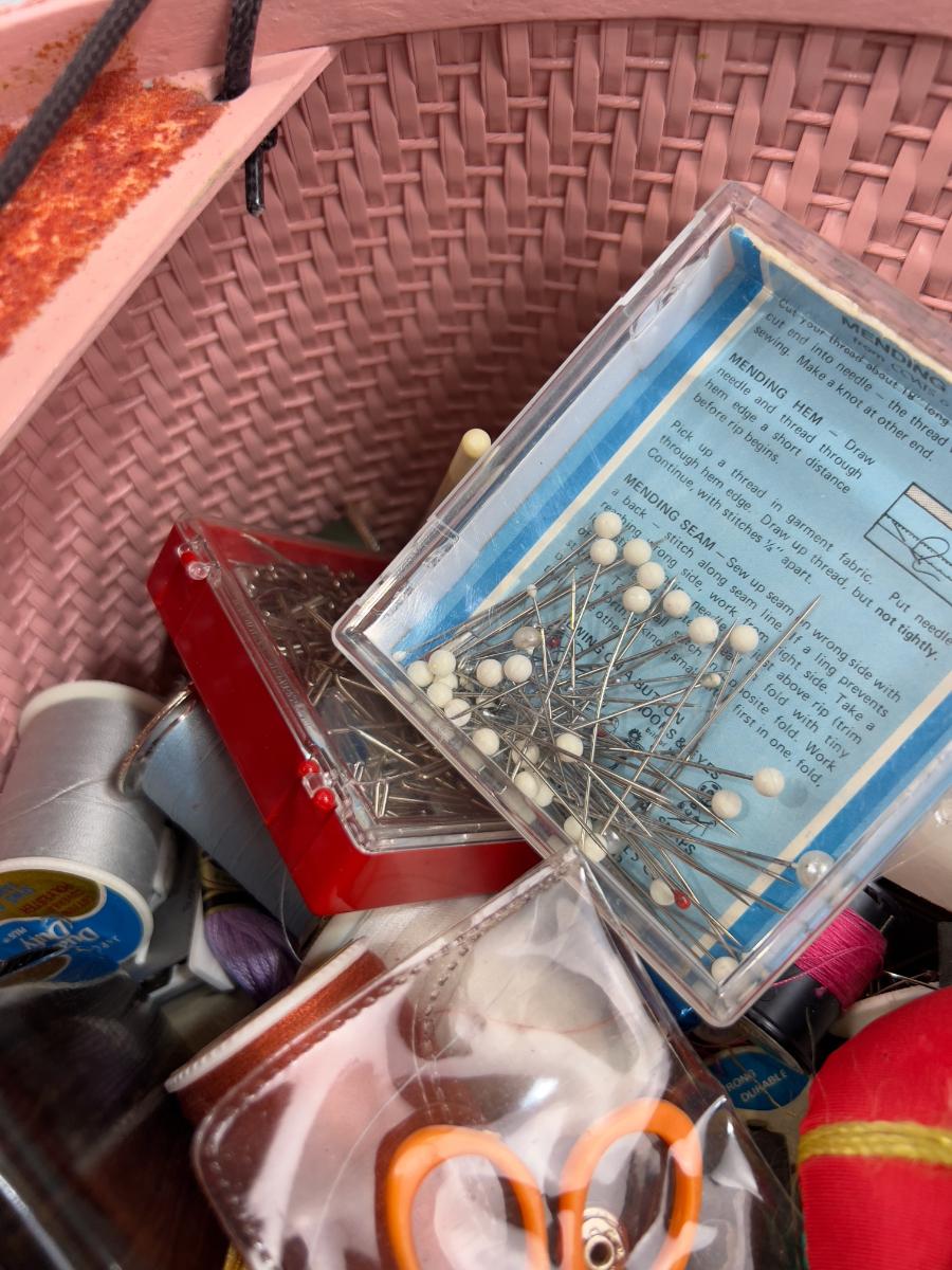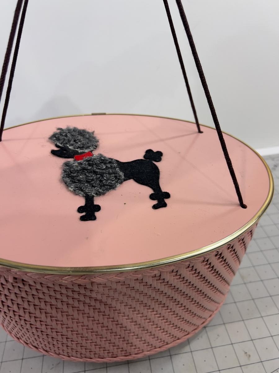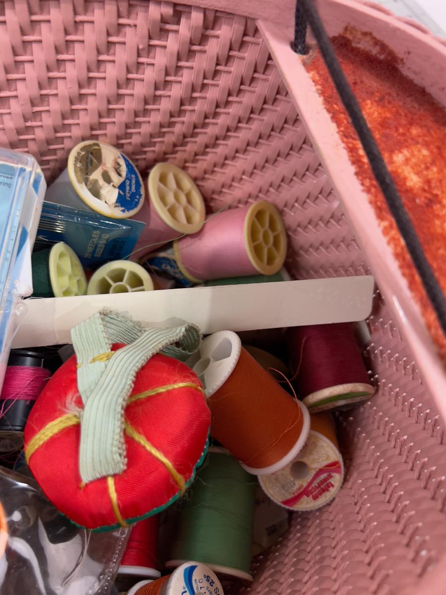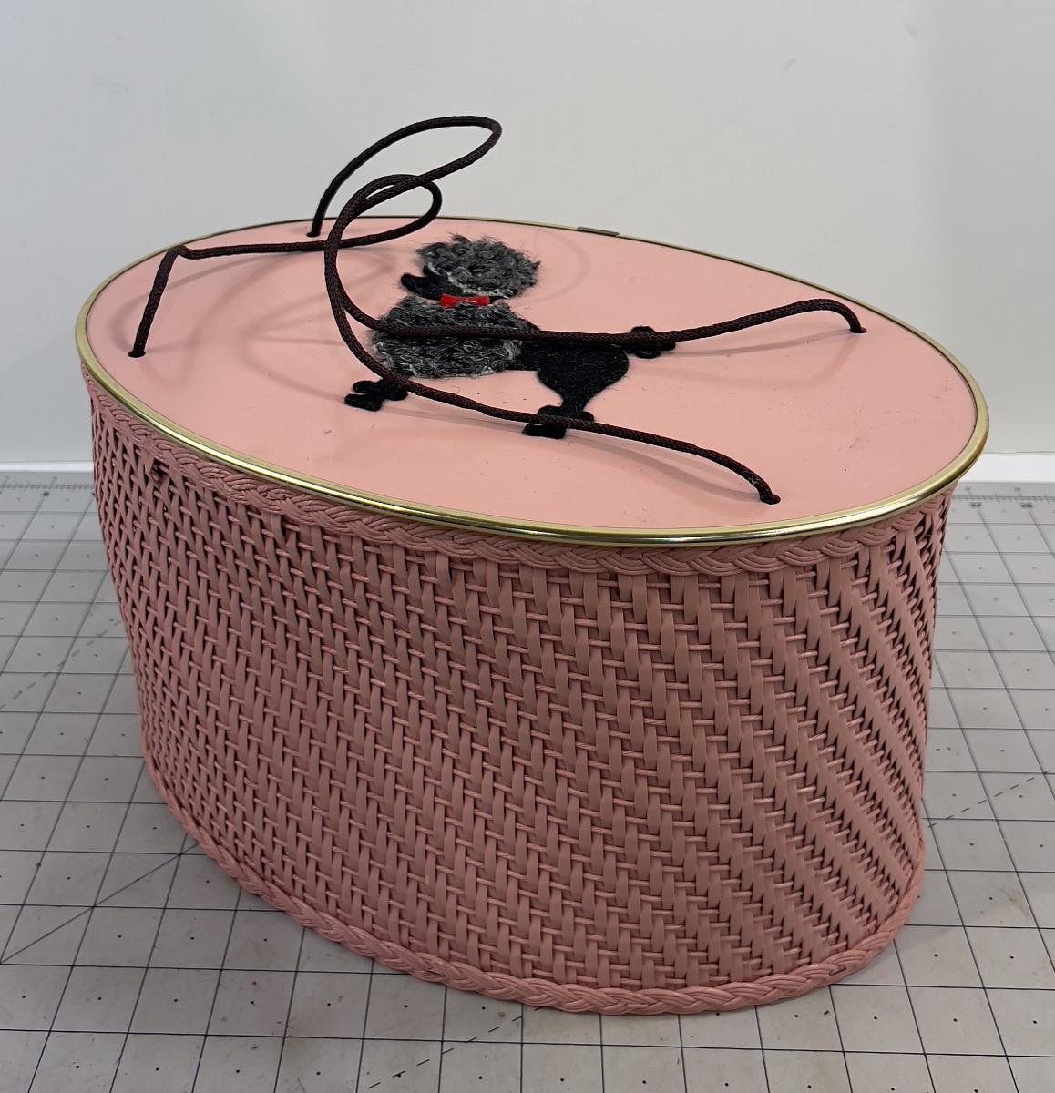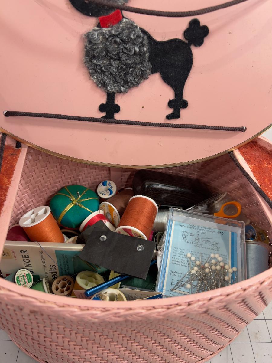 Cutest EVER! Pink Basket with A Black Poodle Sewing Basket Full of NOTIONS!