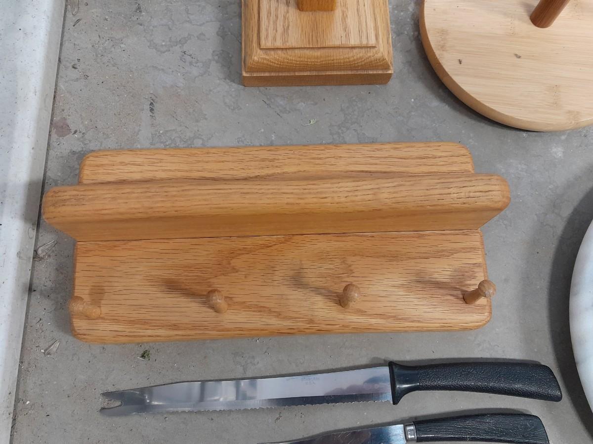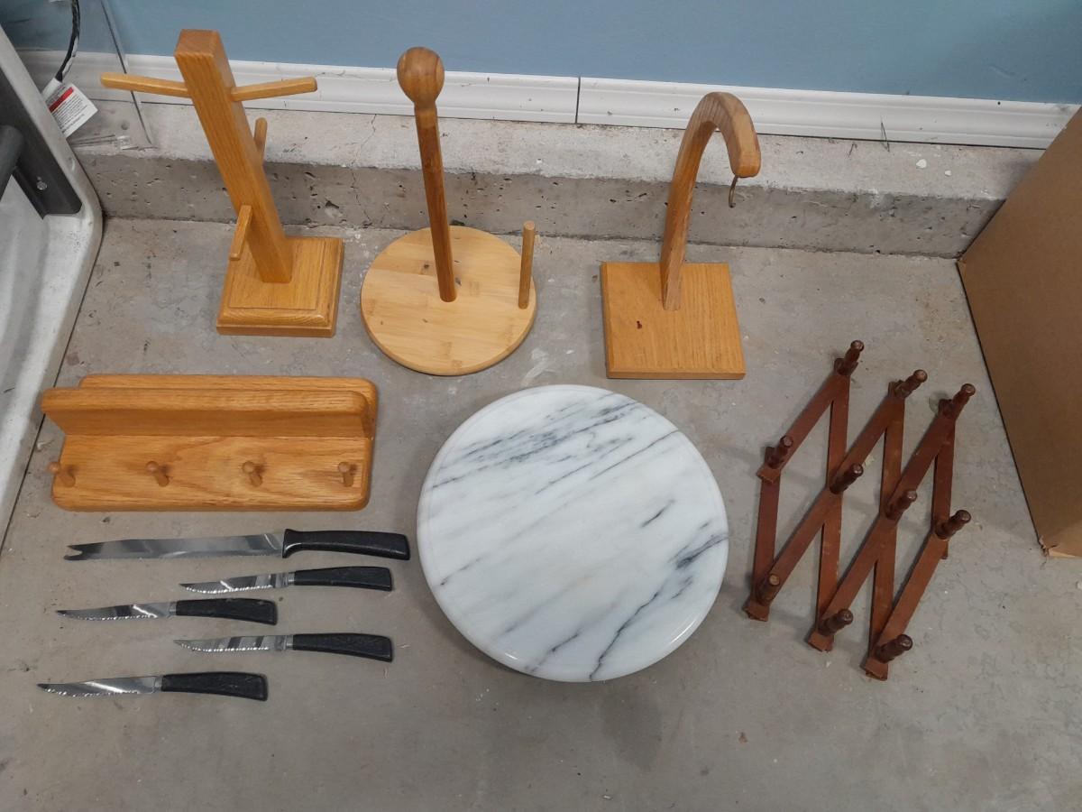 CUTLERY, CUP HOLDERS, PAPER TOWEL AND BANANA HOLDERS, MARBLE CUTTING BOARD