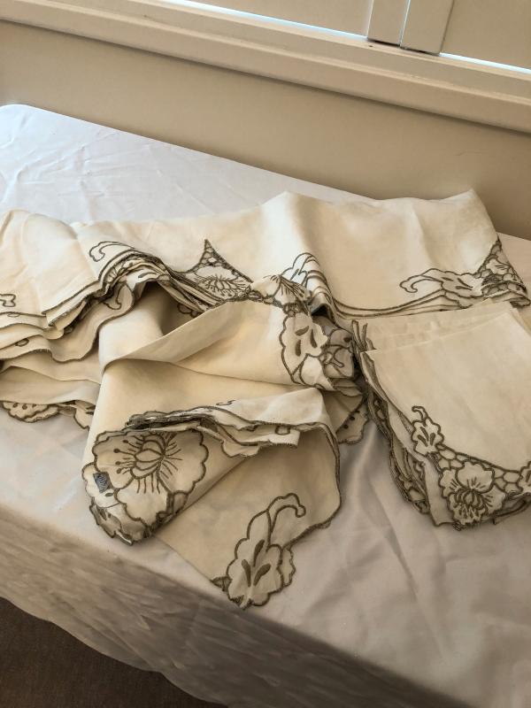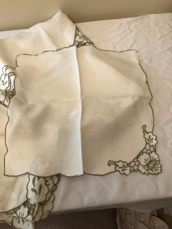Cut-Out Lace Ecru Table Cloth & Napkins
