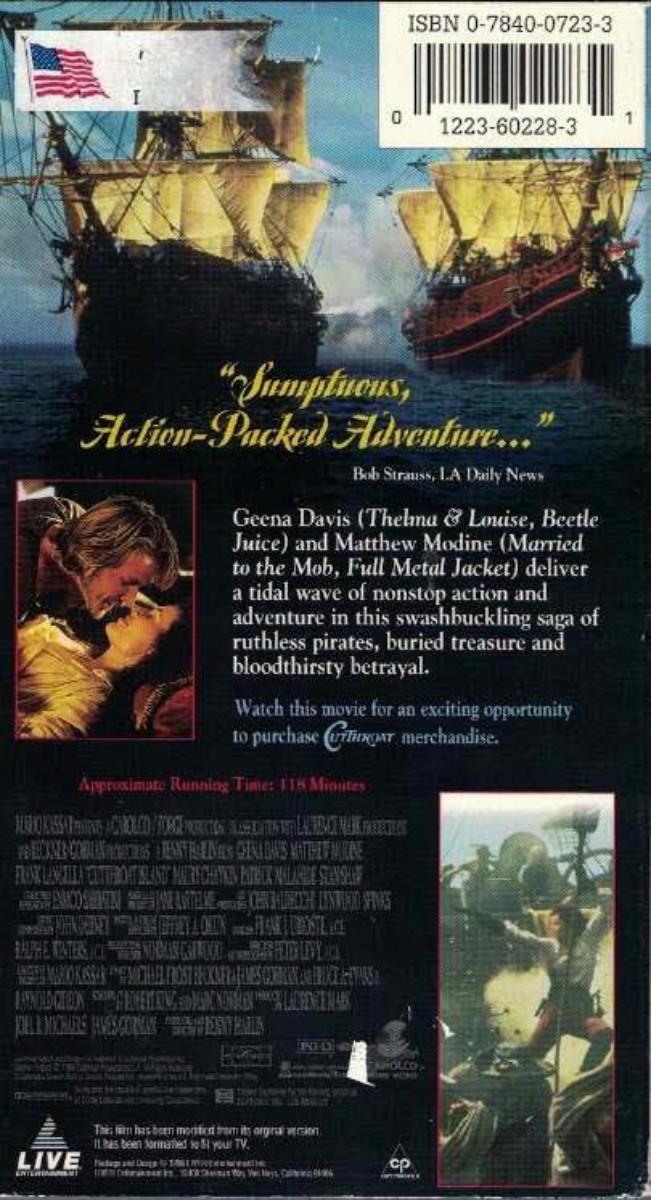 Cutthroat Island * VHS movie, 118 minutes, Hi-Fi Dolby Surround, Excellent condition